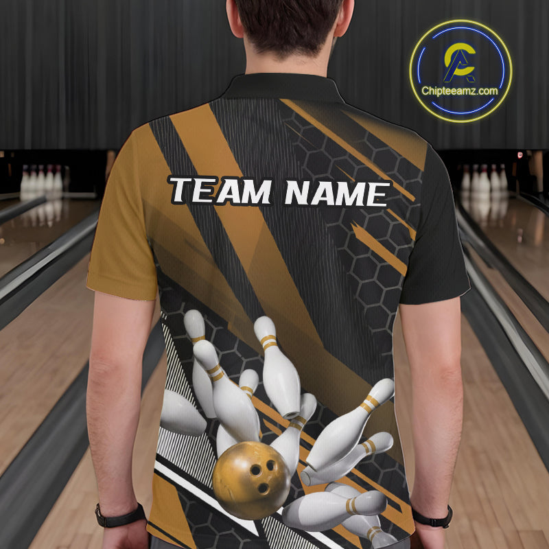 Custom Black And Yellow Bowling Team Jerseys, Striking Bowling League Polo Shirt For Men IPHW9809