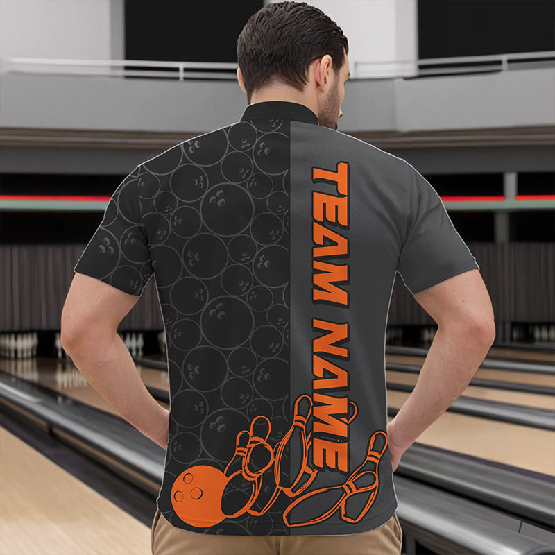 Custom Black And Orange Strike Bowling Quarter-Zip Shirts For Men, Striking Team Bowling Jerseys IPHW8457