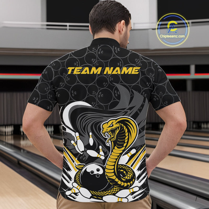 Custom Black And Yellow Cobra Snake Bowling Quarter-Zip Shirts For Men, Cobra Bowling Team Shirt IPHW9699