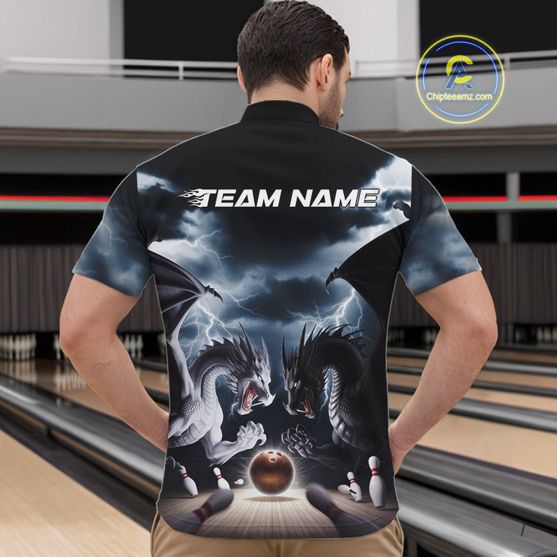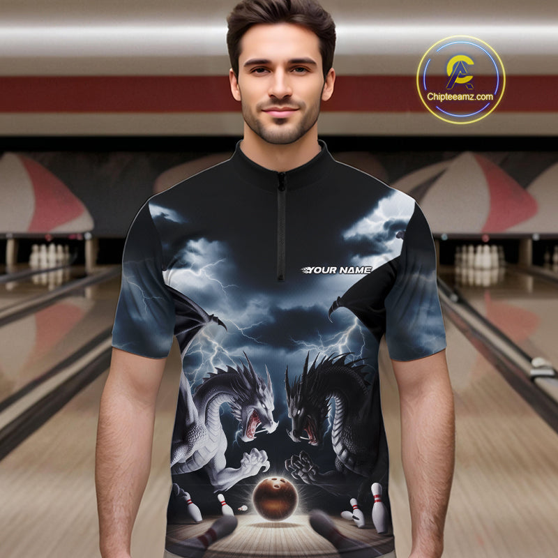 Custom Black And White Dragons Lightning Bowling Quarter-Zip Shirts For Men, Bowling League Shirt IPHW9820