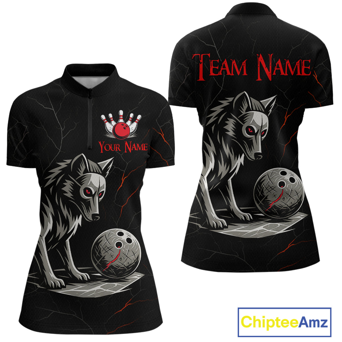 Wolf Bowling Shirt for Women Custom Bowling Team Jersey Black Polo & Quarter-Zip Bowling Unisex QZT700