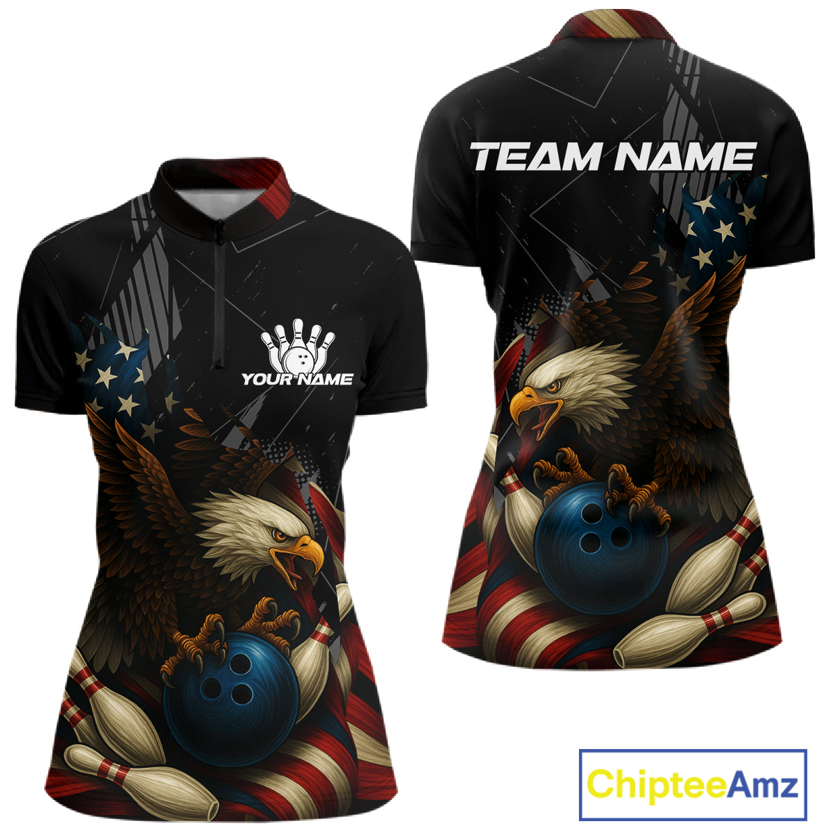 American Flag Eagle Black Bowling Shirts For Women Custom Patriotic Bowling Team Jersey Bowler gifts NQS10606