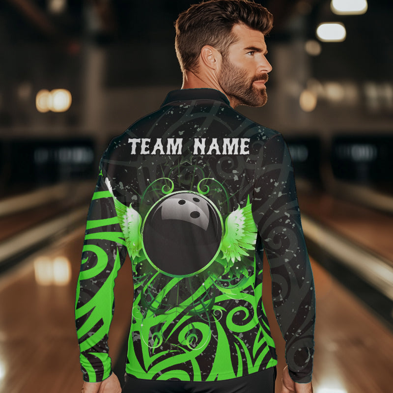 Black and Green Camo Bowling Polo, Quarter Zip Shirt For Men Custom Team Bowling Jersey bowlers outfit NQS9418