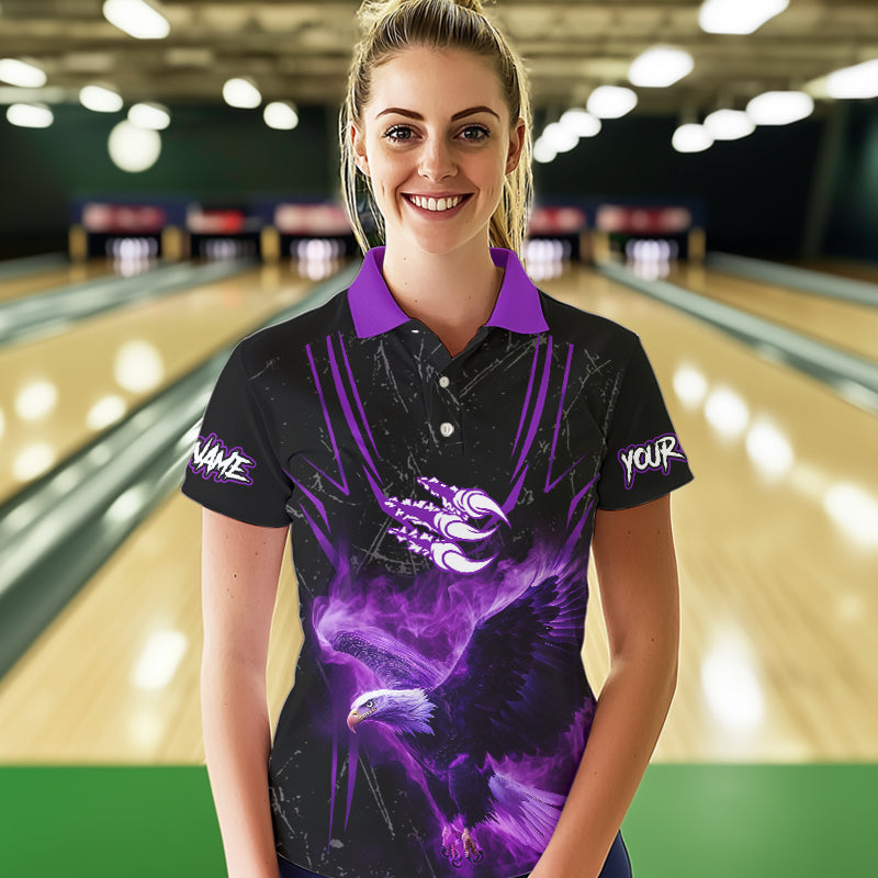Black and Purple Flame Eagle Bowling Shirt For Women Custom Team Name Bowling Jerseys For Bowlers NQS9749