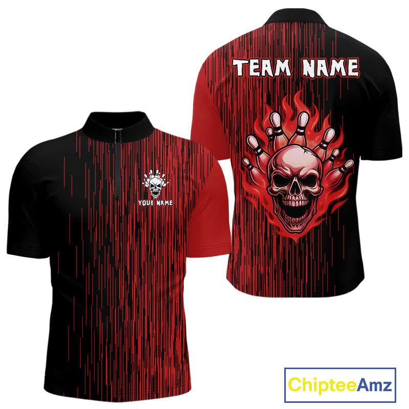 Black and Red pattern Flame Skull Bowling shirts for Men custom bowling jersey for team mens bowler NQS10254