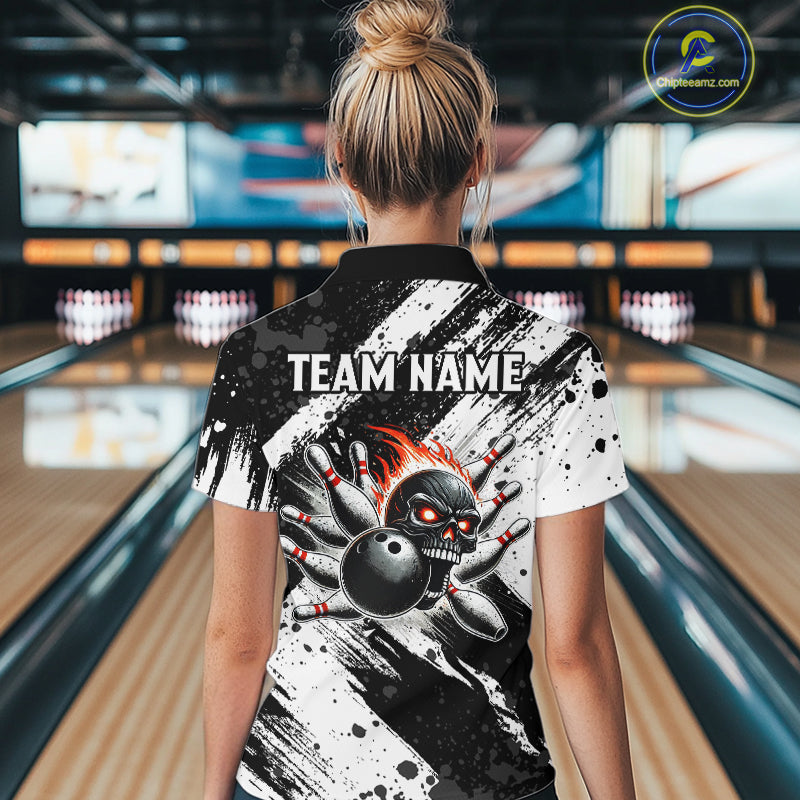 Black and White camo Flame Skull Bowling Shirts For Women Custom Bowling Team Jersey bowlers outfit NQS9795