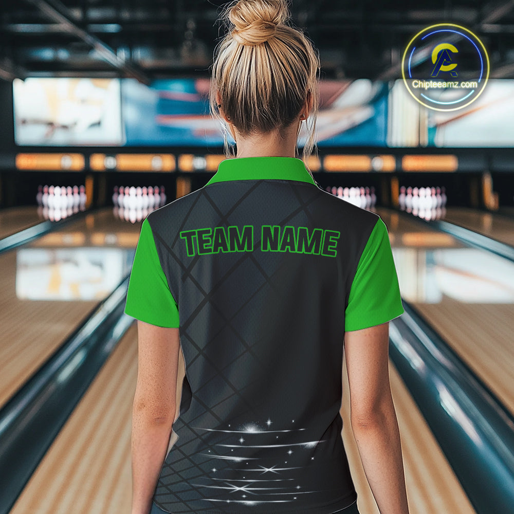 Black & Green bowling league jersey custom Women Bowling Polo, 1/4 zip Shirt, gifts for ladies bowler NQS10096