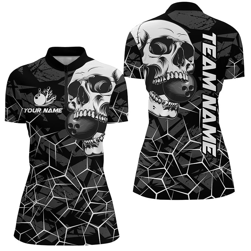 Black Skull camo bowling shirt for women custom bowling team jerseys, gifts for bowlers | White NQS8072