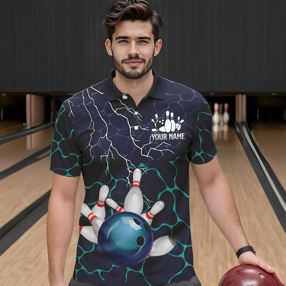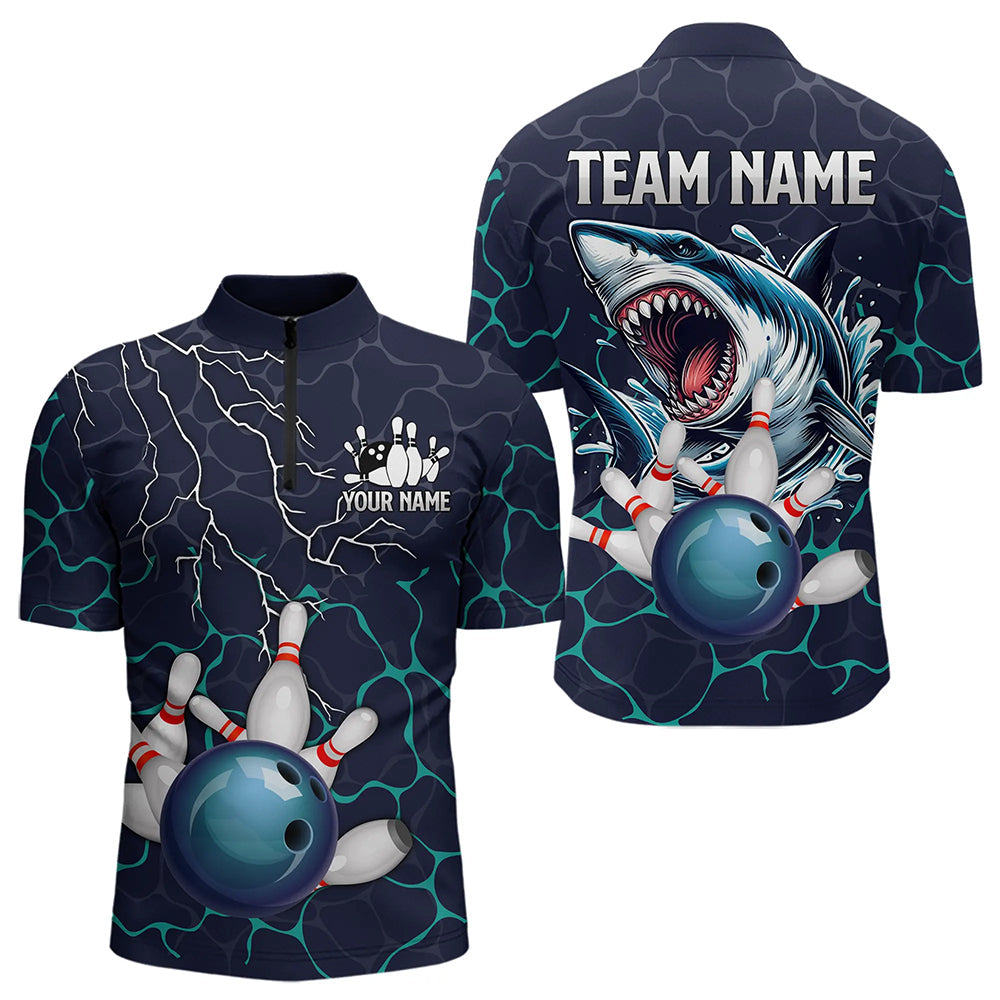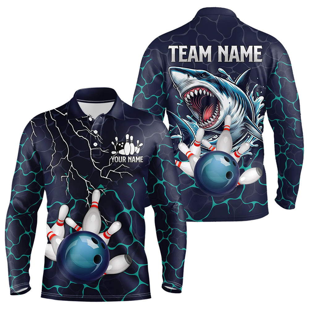 Blue Shark Camo Lightning Thunder Bowling Shirts For Men Custom Bowling Team Shirts, Gift For Bowler NQS9372