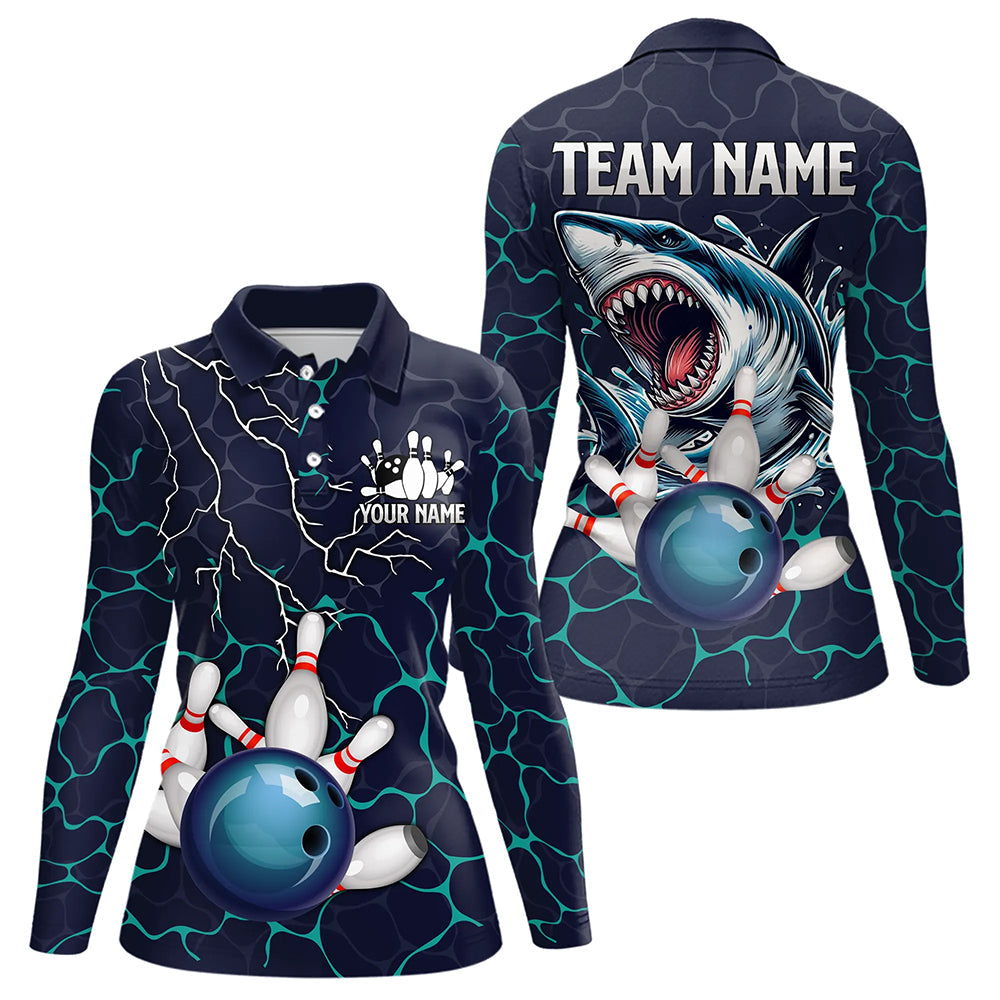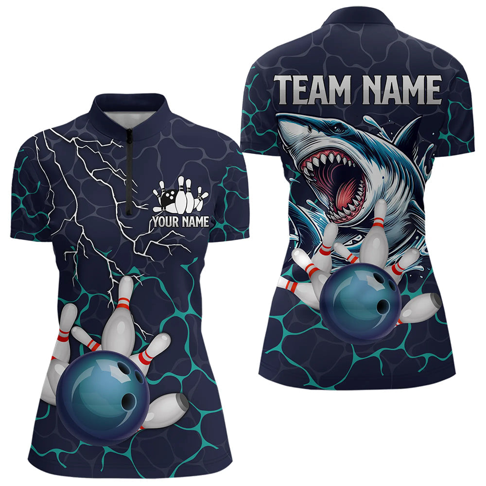 Blue Shark Camo Lightning Thunder Bowling Shirts For Women Custom Bowling Team Shirts, Gift For Bowler NQS9372