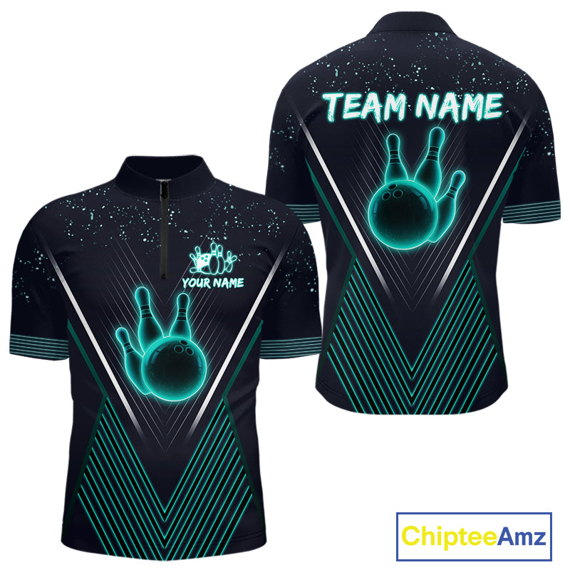 Bowling polo, quarter zip shirt for Men custom team bowling jersey, gift for bowlers | Turquoise NQS10256