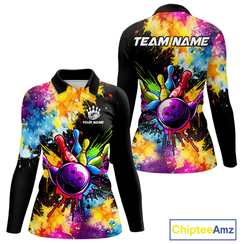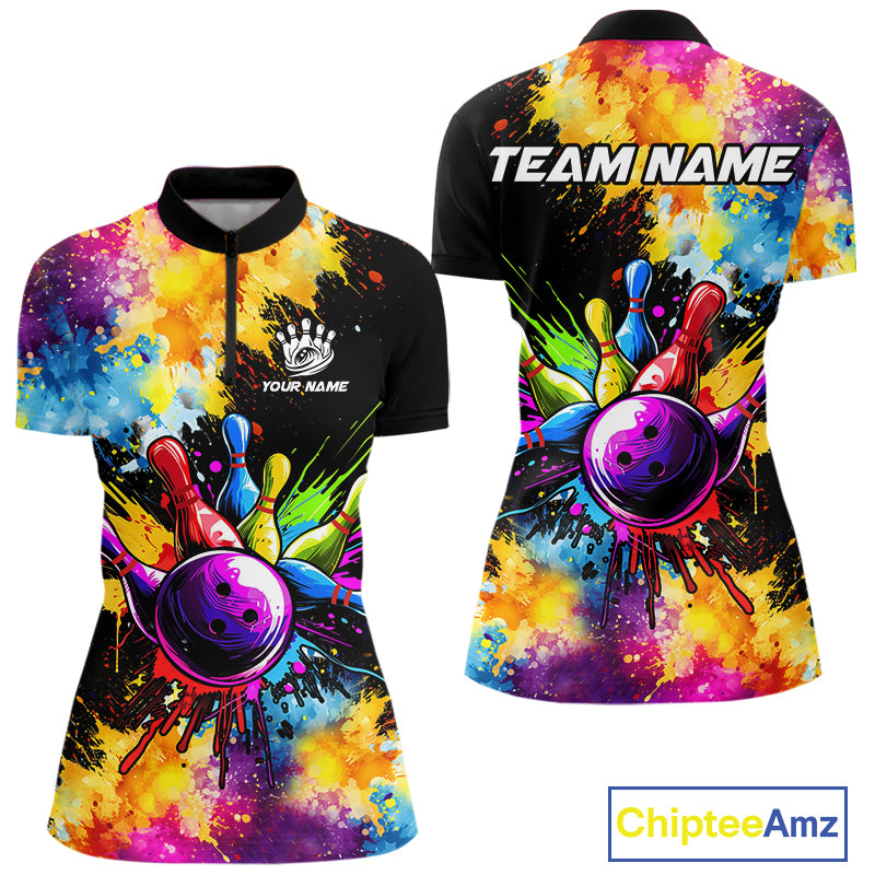 Colorful bowling jerseys Women Bowling Polo, 1/4 Zip Shirt Custom Bowling Team shirts for bowlers NQS10241
