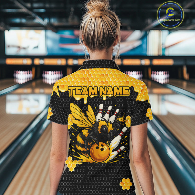 Custom Black and Yellow Honey Bee Bowling Shirts For Women, Bee Bowling Team Bowlers Outfit NQS10376