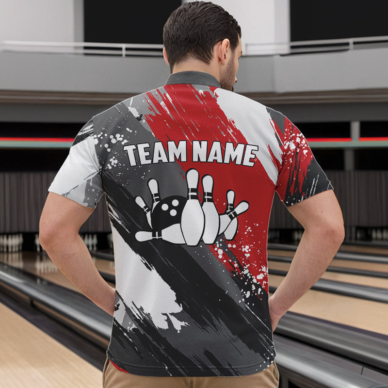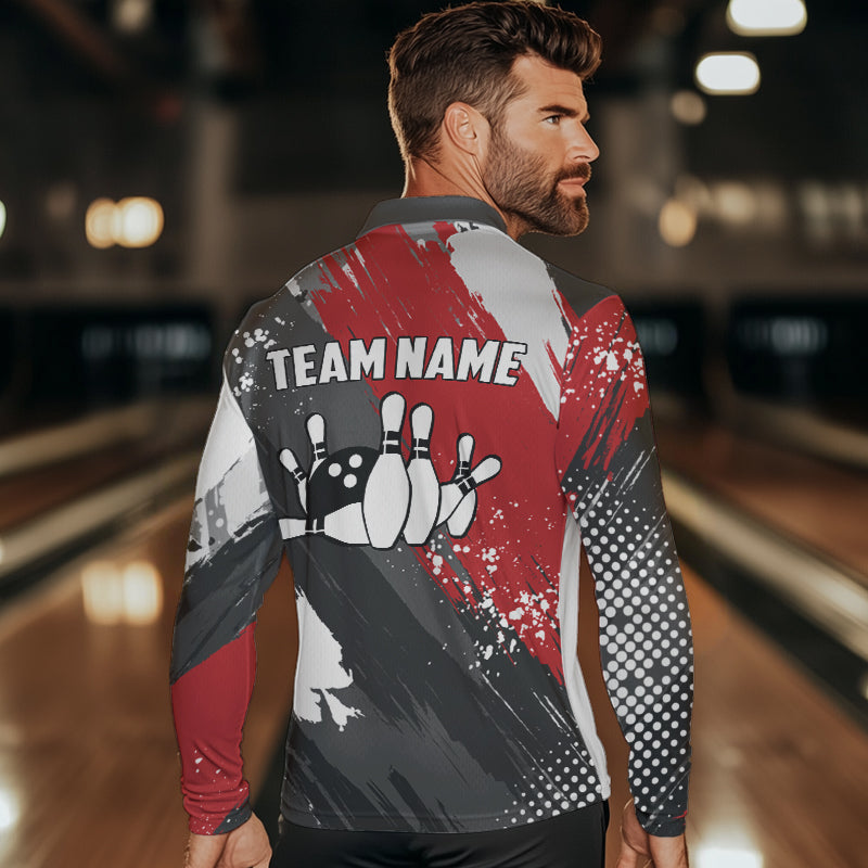 Grunge pattern Bowling Team Polo, 1/4 Zip Shirt For Men Custom Bowling jersey Uniform Bowler Outfits NQS9370