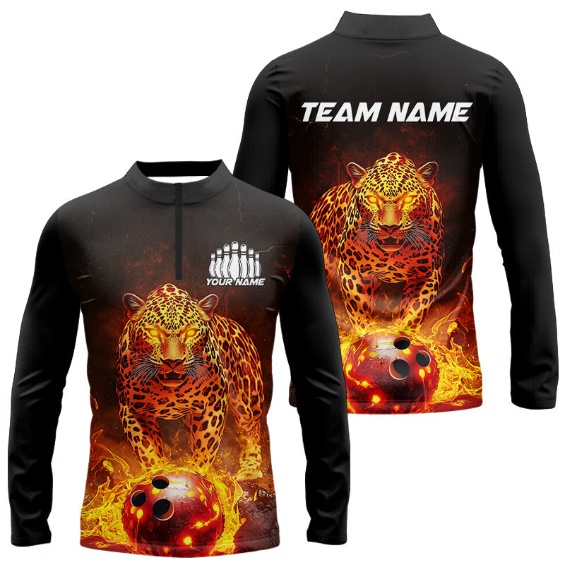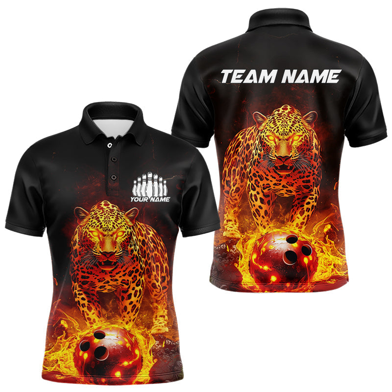 Custom Flaming Leopard Bowling Shirts For Men, Fire Bowling Team Shirt Bowler Uniform IPHW8000