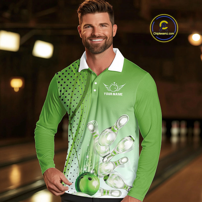 Mens bowling polo, quarter zip shirts Custom bowling team jerseys, gift for Bowlers | Green NQS10072