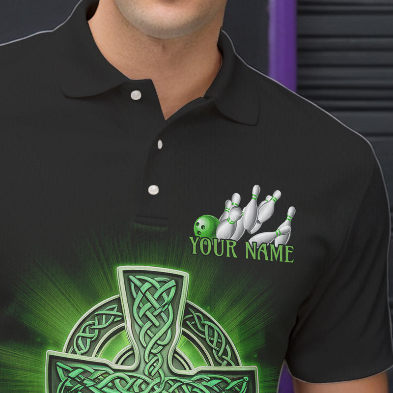 Custom Celtic Cross Faith Bowling Polo Team Shirts For Men, Bowlers Outfits IPHW8577
