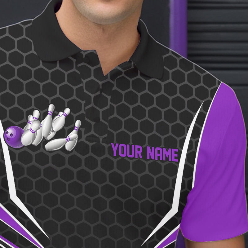 Custom Black And Purple Eagle Bowling Jerseys, Bowling Team Men Polo Shirts Bowlers Outfits IPHW8749