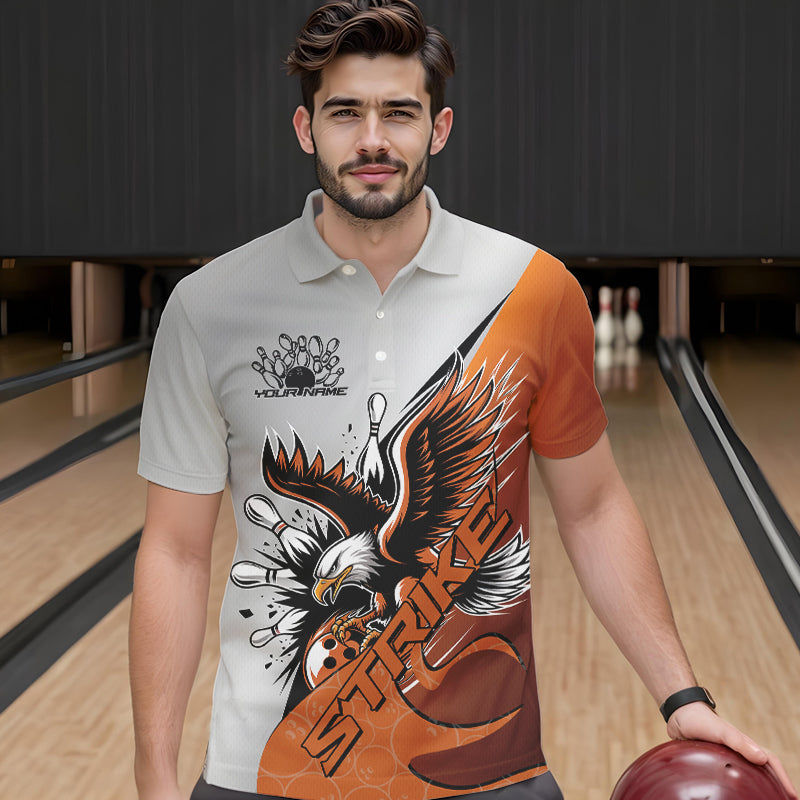 Custom Orange Eagle Bowling Team Men Polo Shirts, Eagle Bowling League Shirt Bowlers Outfit IPHW8754