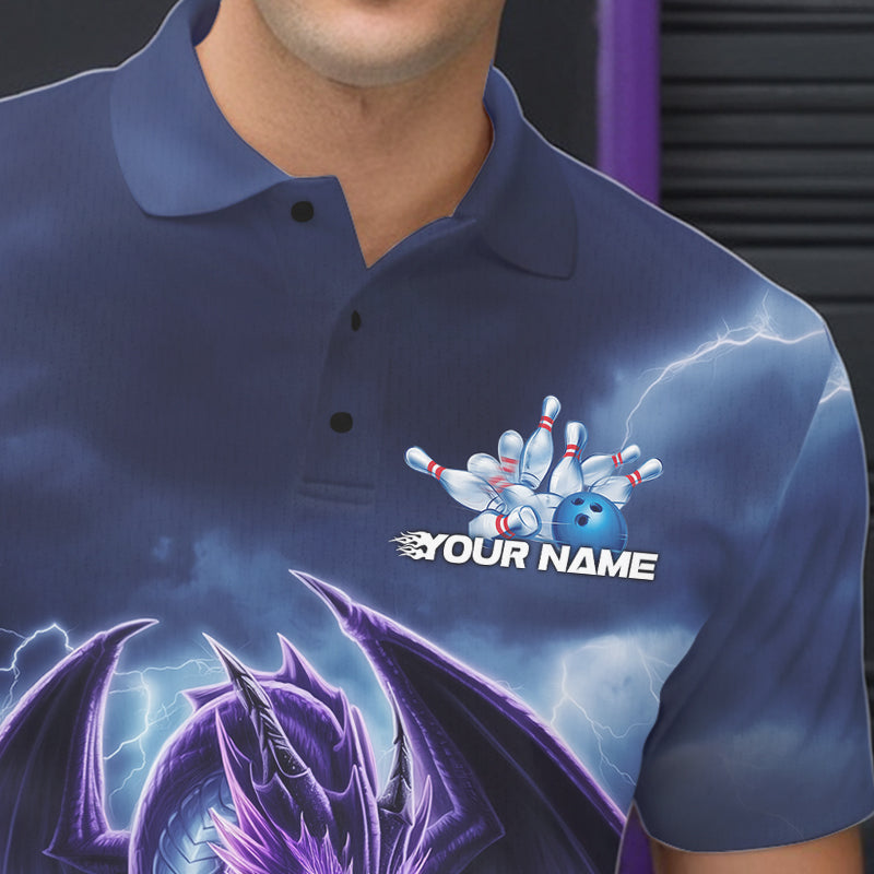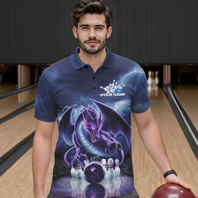 Custom Blue Thunder Lightning Purple Dragon Bowling Team Men Polo Shirts, Bowlers Outfit IPHW8922