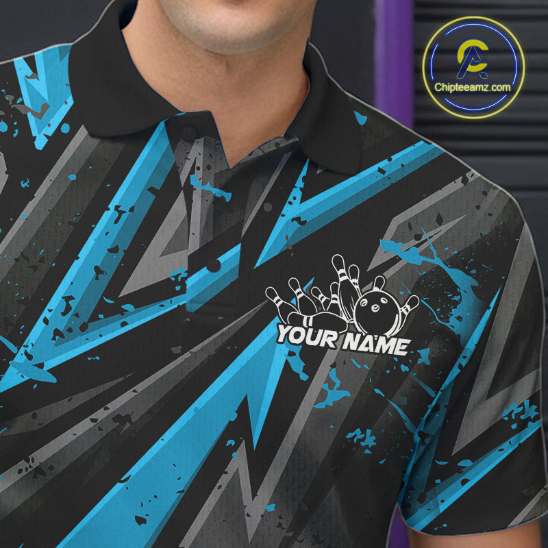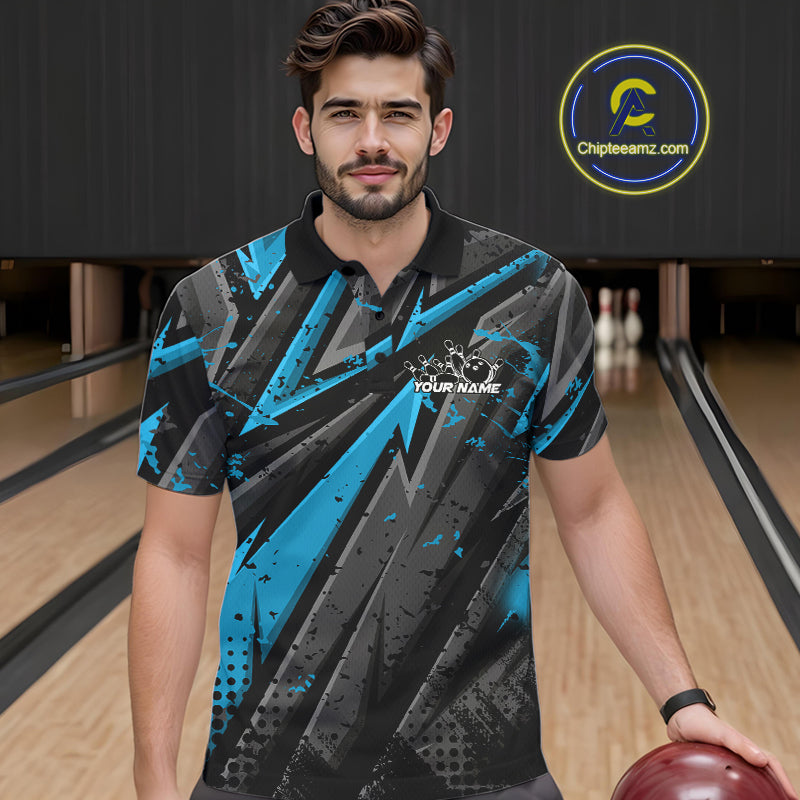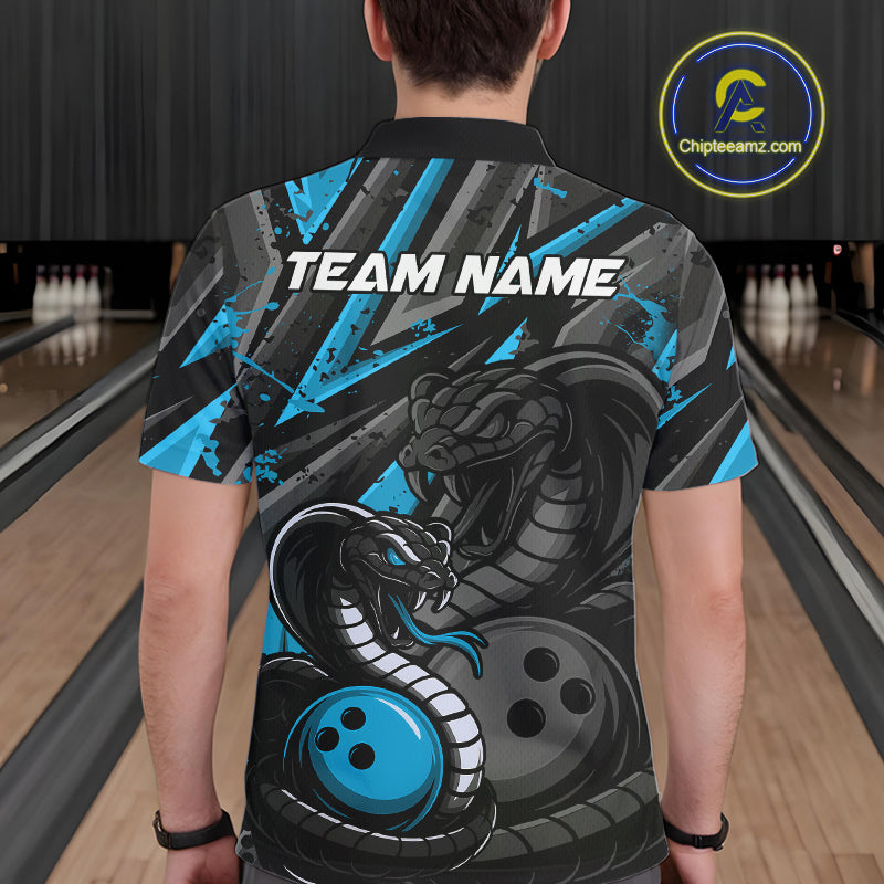 Custom Grunge Black And Blue Cobra Snake Bowling Men Polo Shirts With Team Name For Bowlers IPHW9029