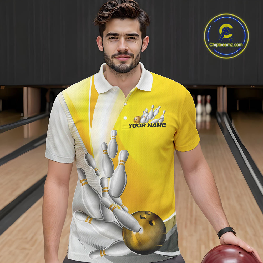 Custom Gold Bowling Polo Shirts For Men, Bowling Team Shirt Bowlers Outfit IPHW9230