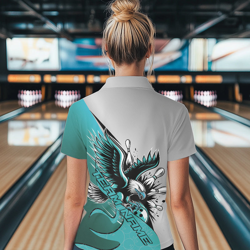 Custom Blue Eagle Bowling Team Women Polo Shirts, Eagle Bowling League Shirt Bowlers Outfit IPHW8755