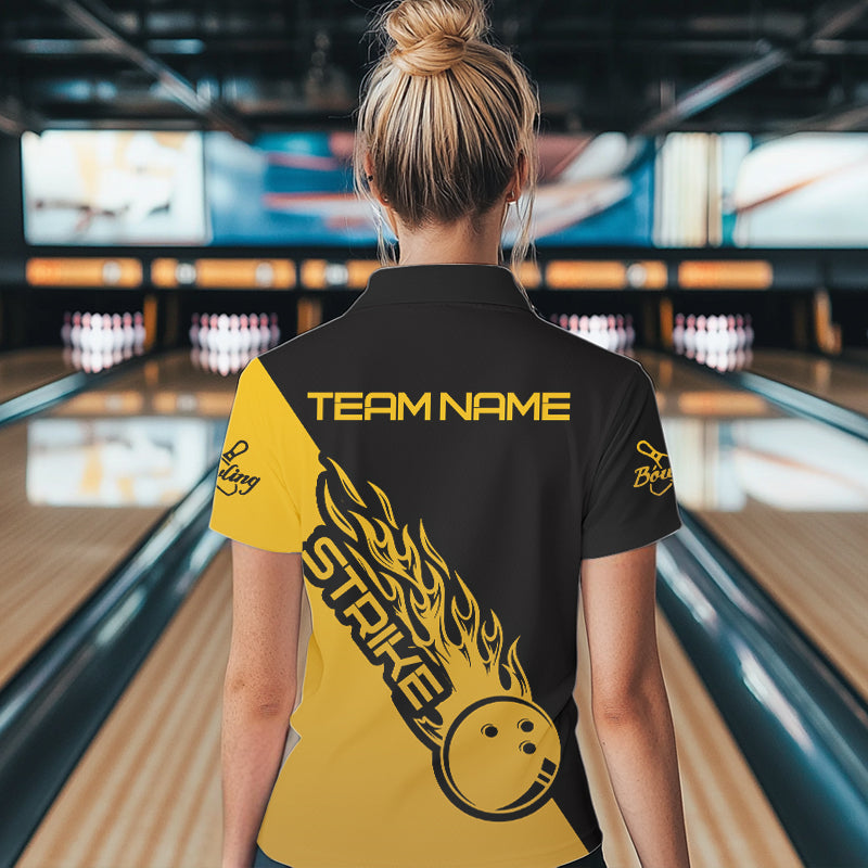Black And Golden Custom Strike Bowling Women Polo Shirts , Bowling Team Shirt Bowler Outfit IPHW8825