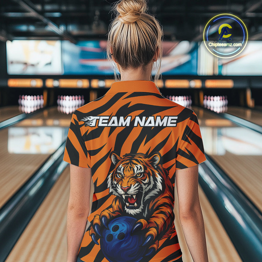 Custom Tiger Bowling Team Polo Shirts For Women, Tiger Bowling Team Uniform Bowler Outfit IPHW9025
