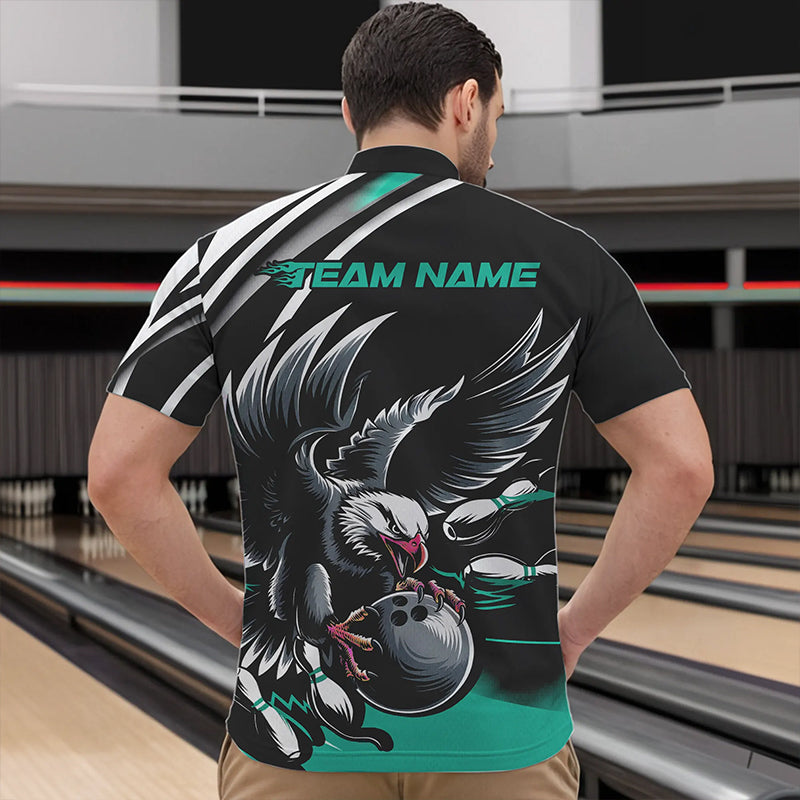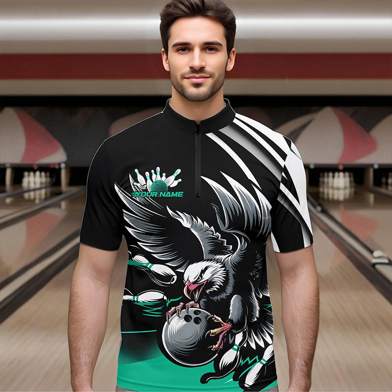 Custom Black And Blue Eagle Bowling Jerseys, Bowling Team Men Quarter-Zip Shirts Bowlers Outfits IPHW8887