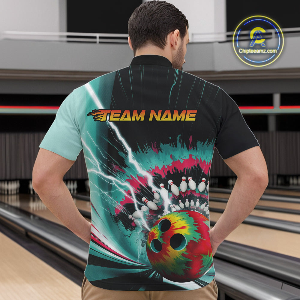 Custom Colorful Tie Dye Bowling Quarter-Zip Shirts For Men, Rainbow Bowlers Outfit IPHW9117
