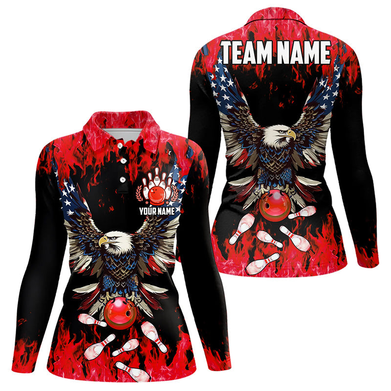 Red flame Women bowling shirts Custom American flag Eagle Team bowling shirts, gift for bowlers NQS9214