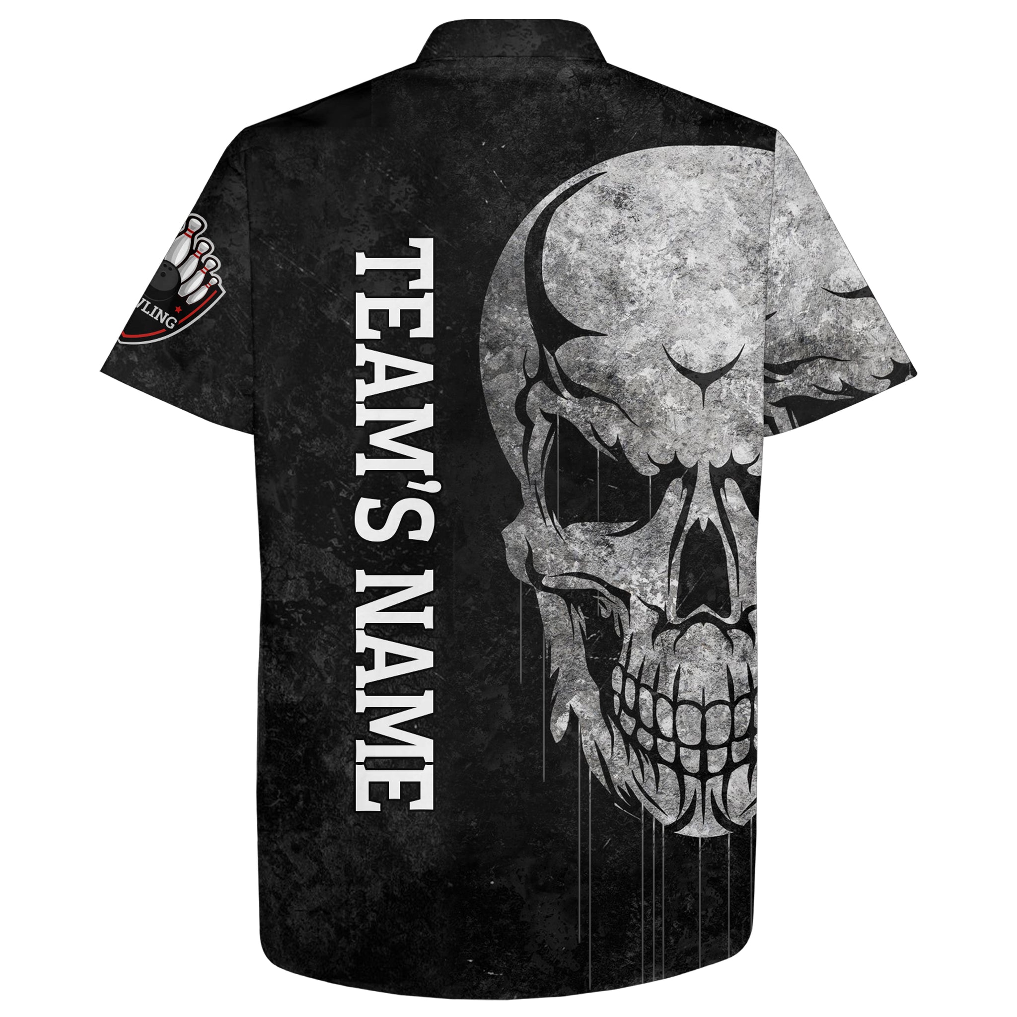 Men Women Skull Hawaiian Bowling Shirt, Patriotic Custom Name Black Bowlers Jersey American Flag NBH93