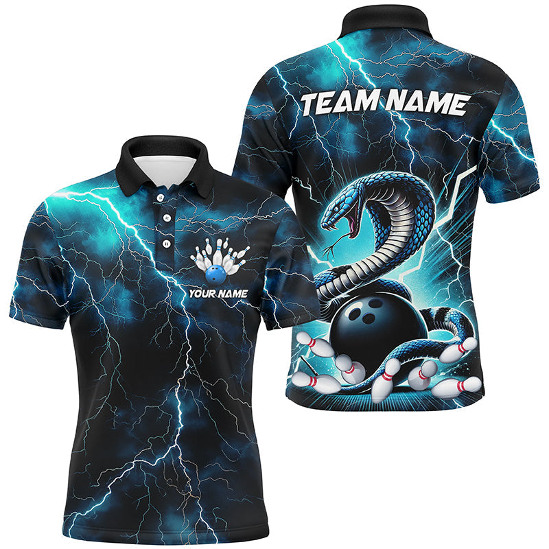 Blue Thunder Lightning Custom Cobra Snake Bowling Shirts For Men, Bowling Team Shirt With Names IPHW7423