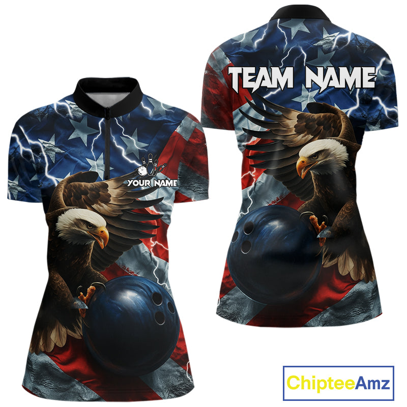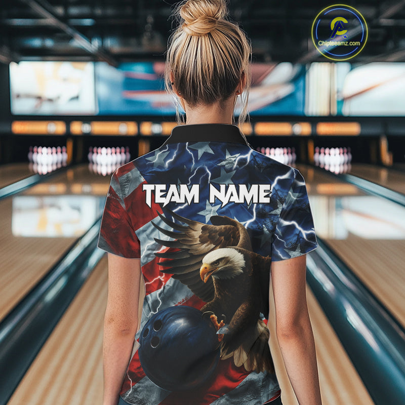 American Flag Eagle Lightning Thunder Bowling Shirts For Women Custom Patriotic Bowling Team Jerseys NQS11059