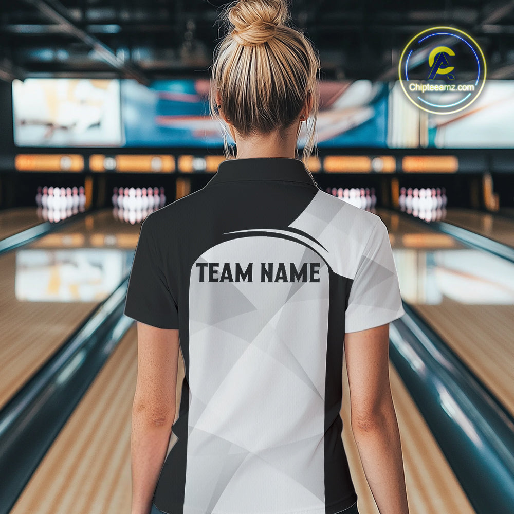 Black and White Funny Skull reaper Bowling Polo, 1/4 Zip Shirts For Women Custom Team Bowling Jersey NQS11100