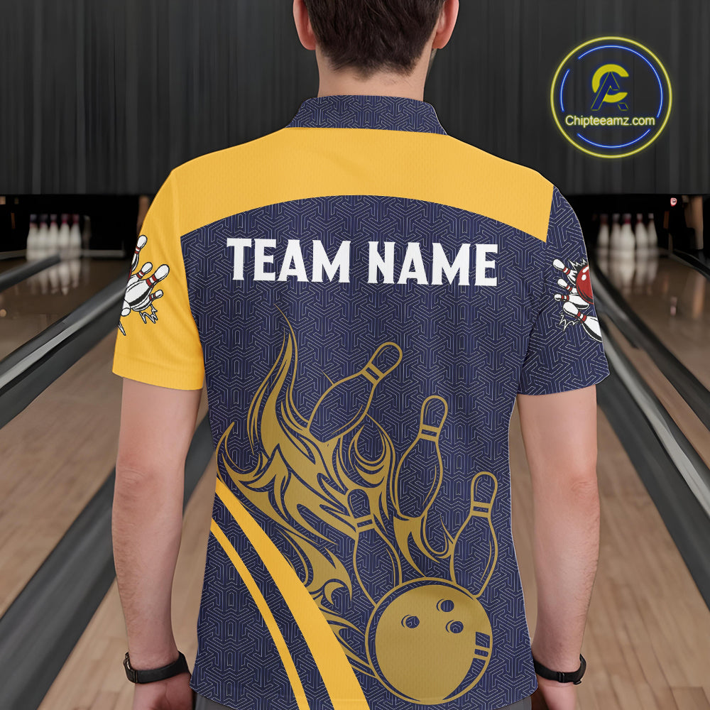 Blue and Yellow flame Bowling polo, 1/4 zip shirts for men custom Bowling team jerseys bowlers outfit NQS10983