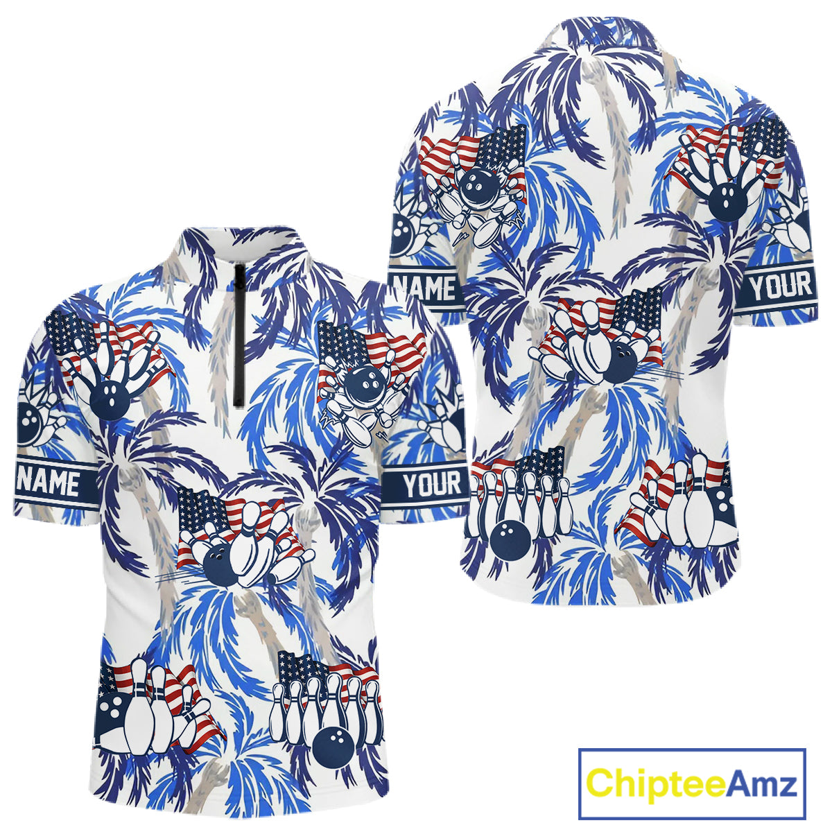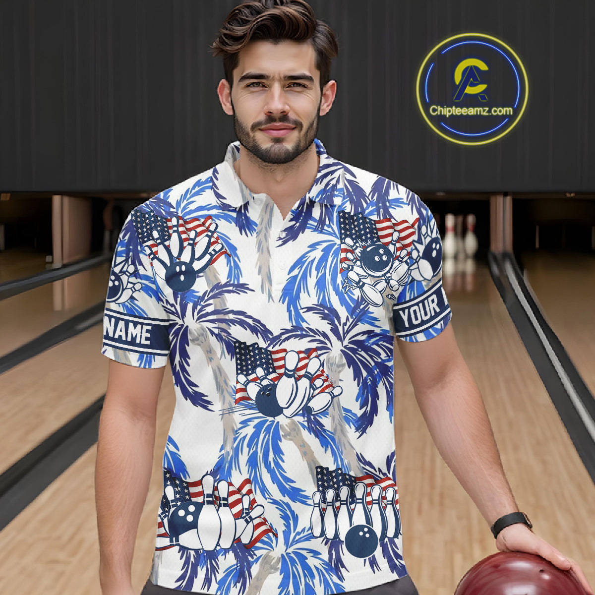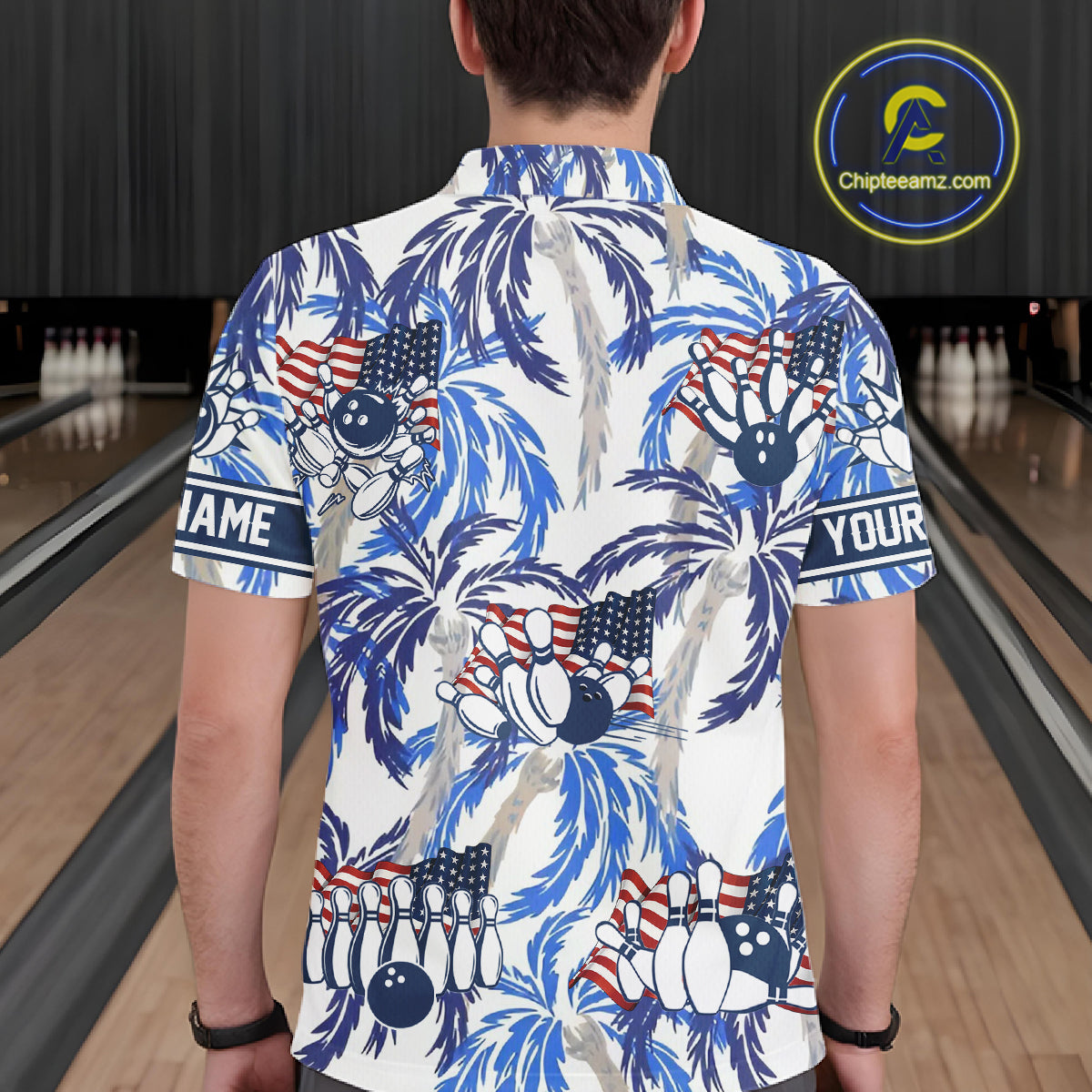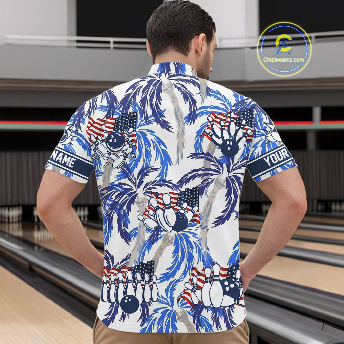 Blue Palm tropical pattern American Flag Bowling shirts For Men custom bowling team jerseys NQS11097