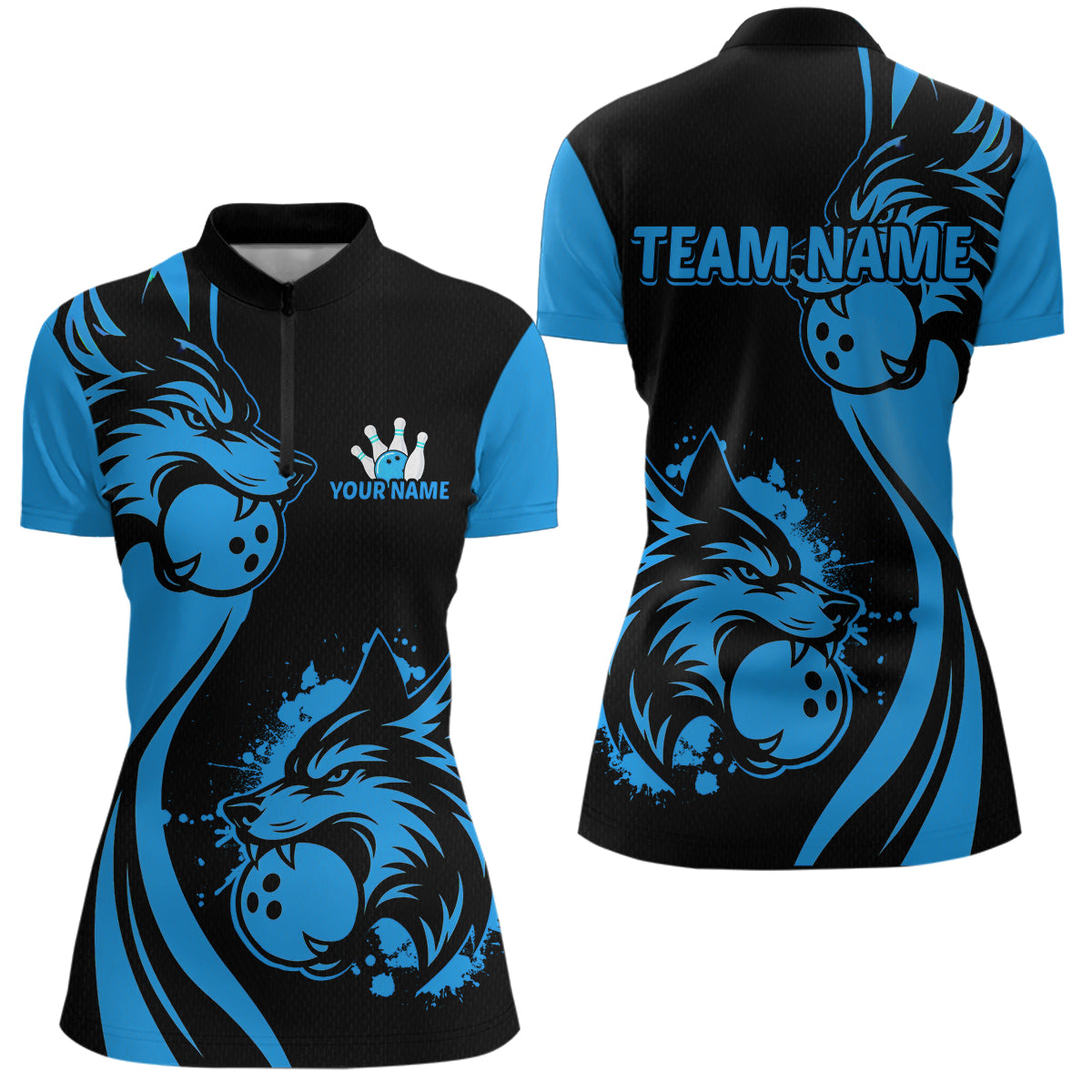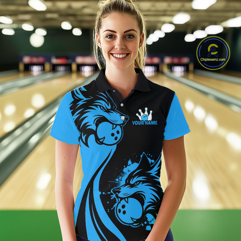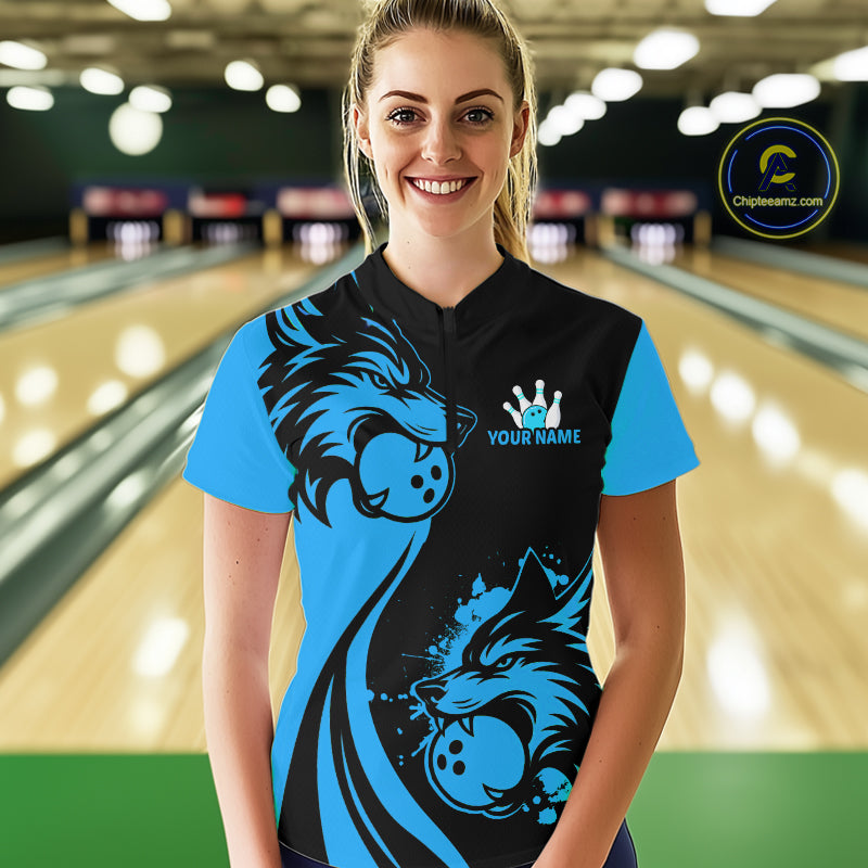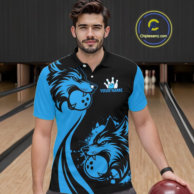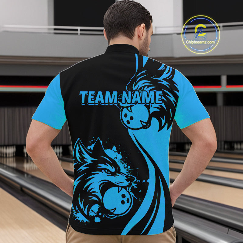 Blue Wolf Bowling Shirts for Team Men Women Custom Wolf Bowling Jerseys for Couples MBL197