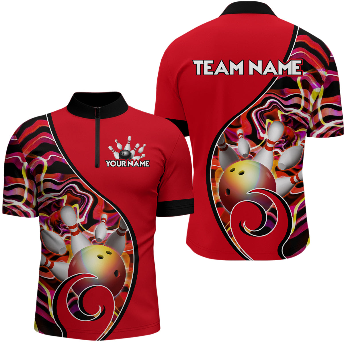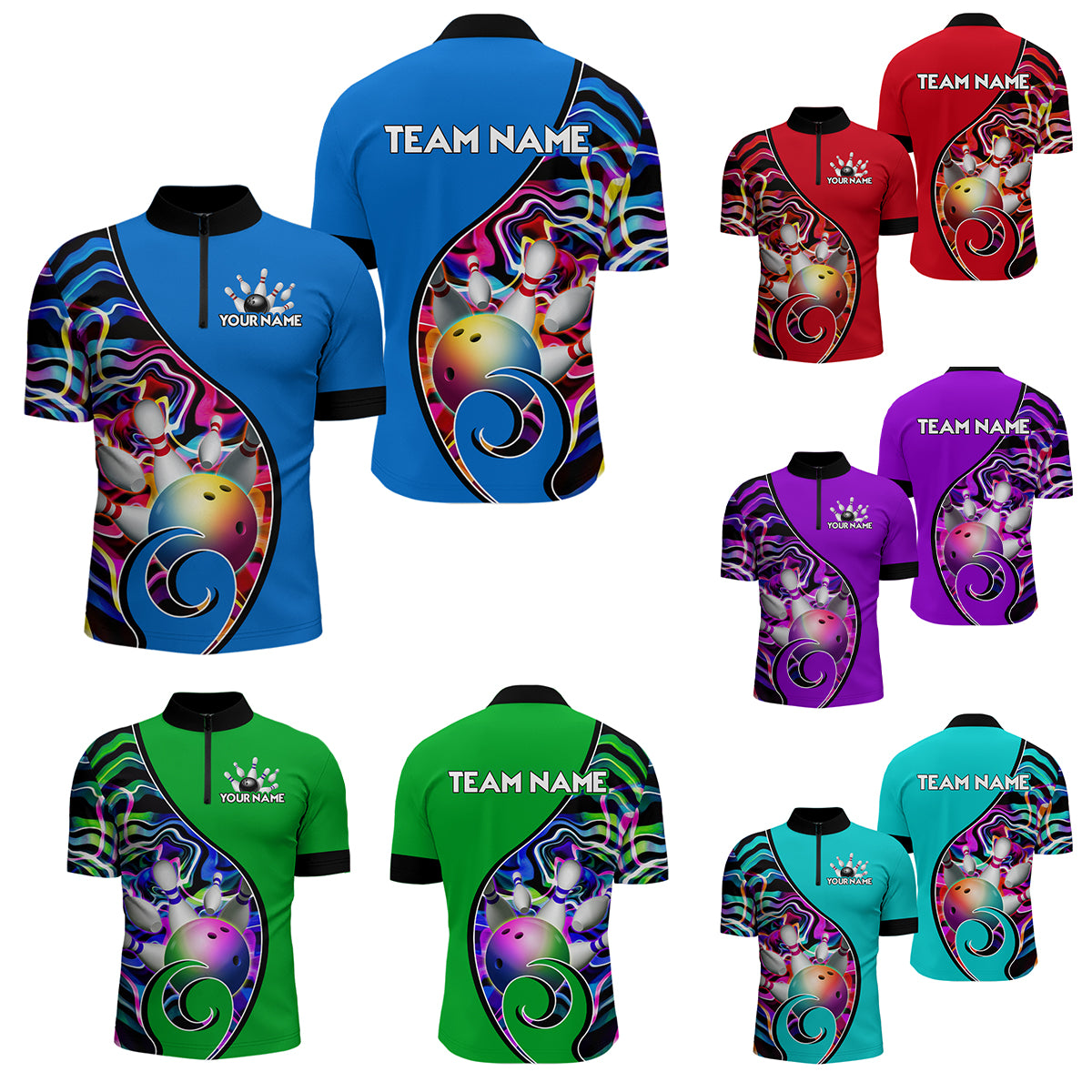 Custom Bowling Team Men Quarter-Zip Shirts - Personalized Abstractt Colors Bowling Jersey YYD0080