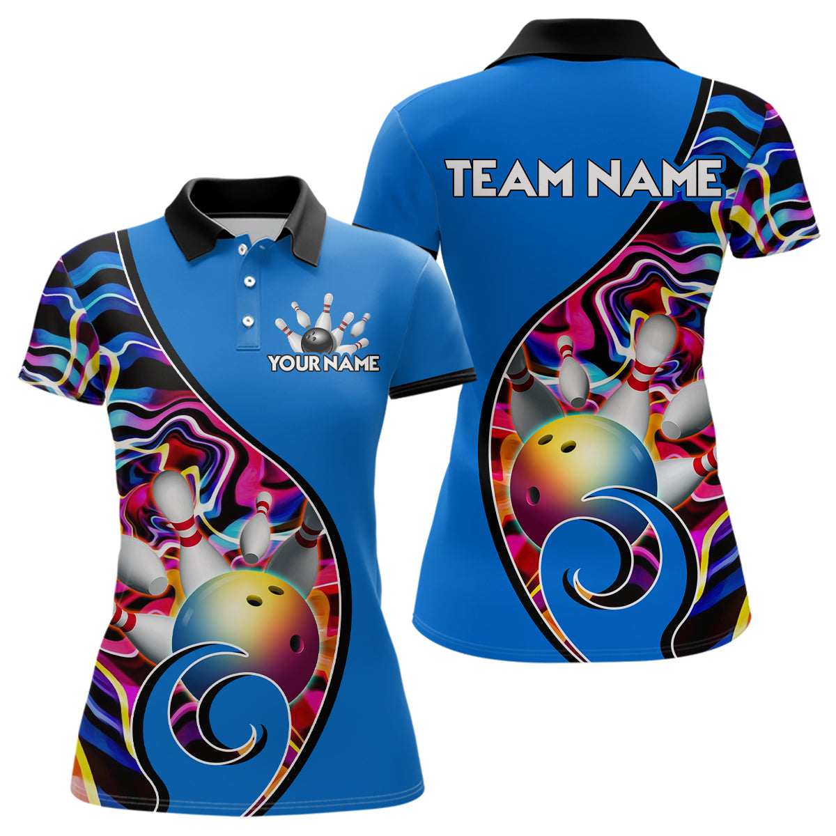 Custom Bowling Team Polo Shirts for Women - Personalized Abstract Colors Bowling Jersey YYD0080