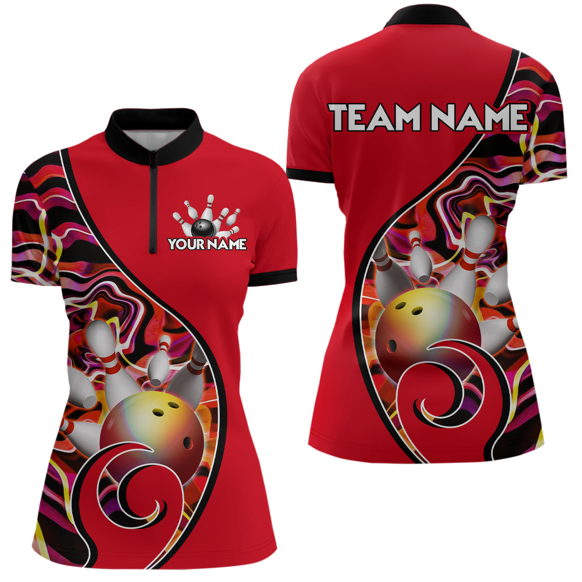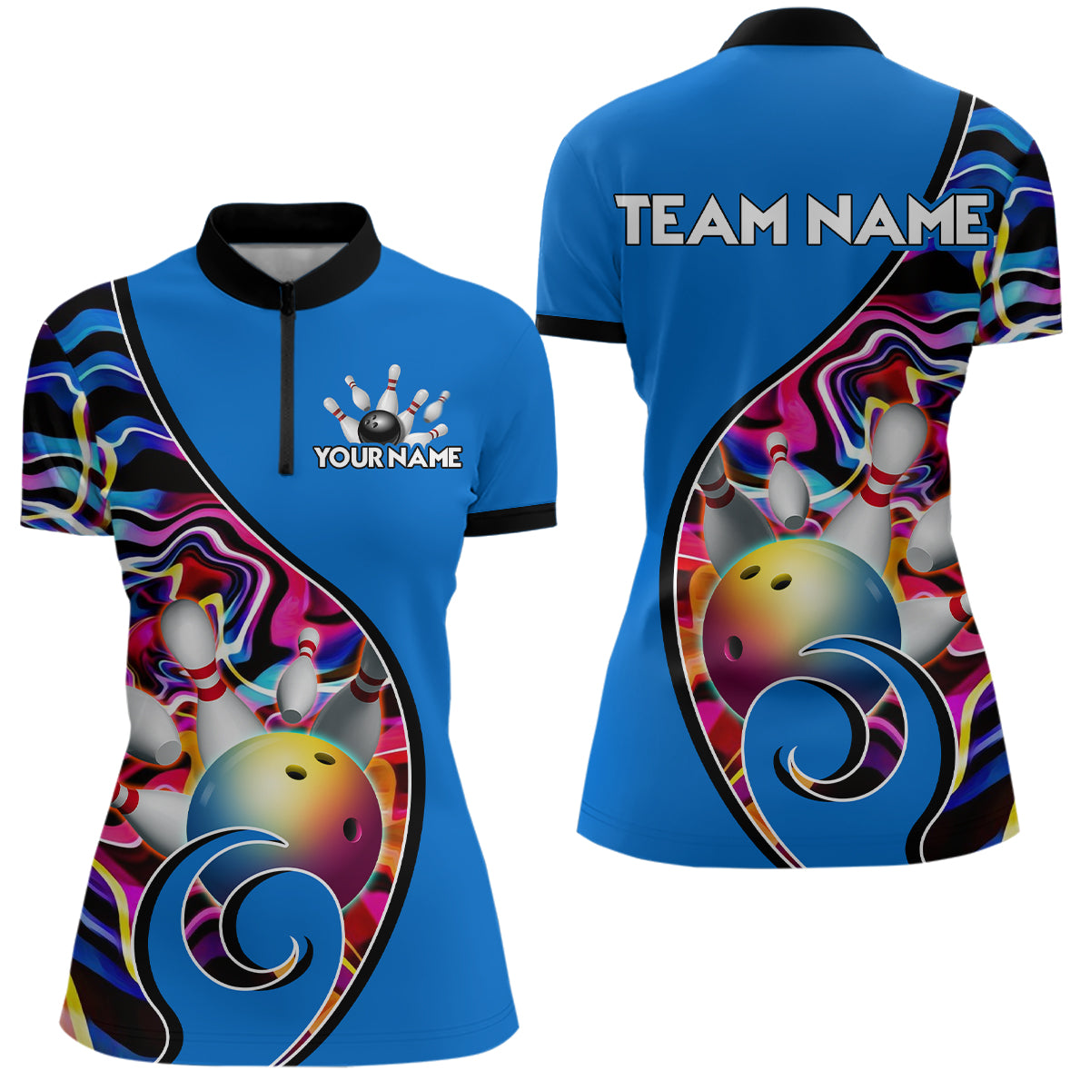 Custom Bowling Team Women Quarter-Zip Shirts - Personalized Abstractt Colors Bowling Jersey YYD0080