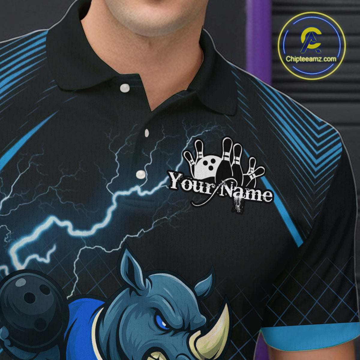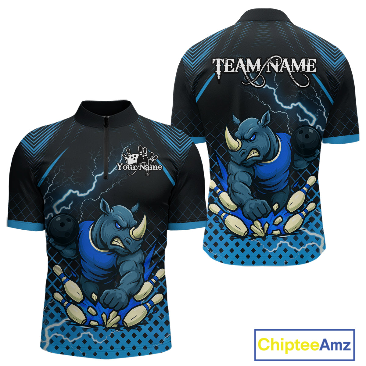 Custom Funny Blue Rhino Bowling Team Shirt for Men Bowling Jersey Polo, Quarter-Zip Outfit QZT805