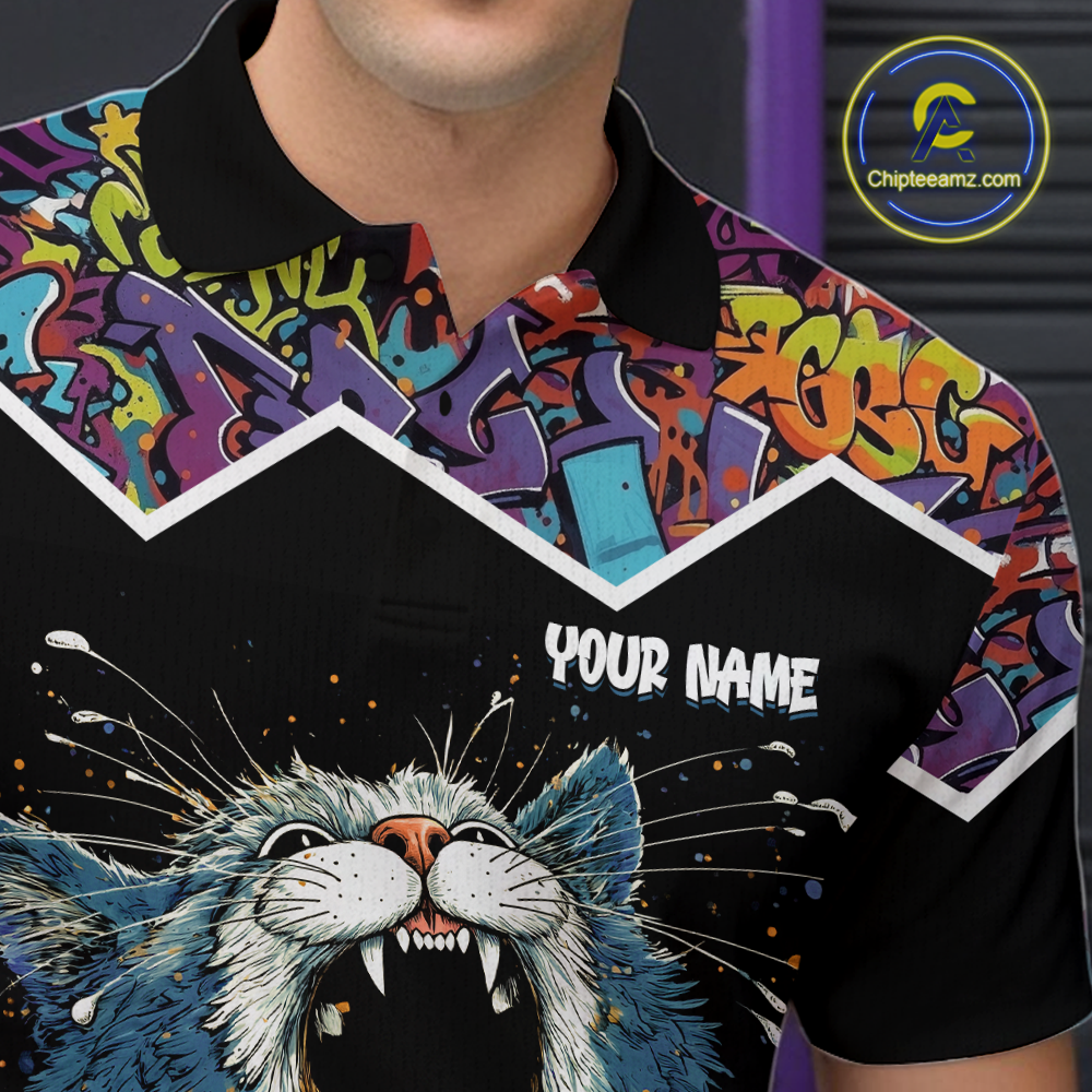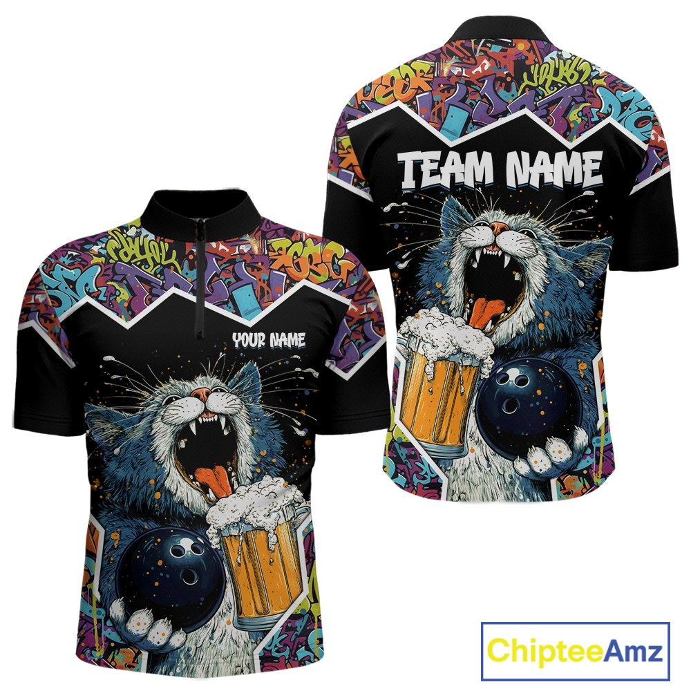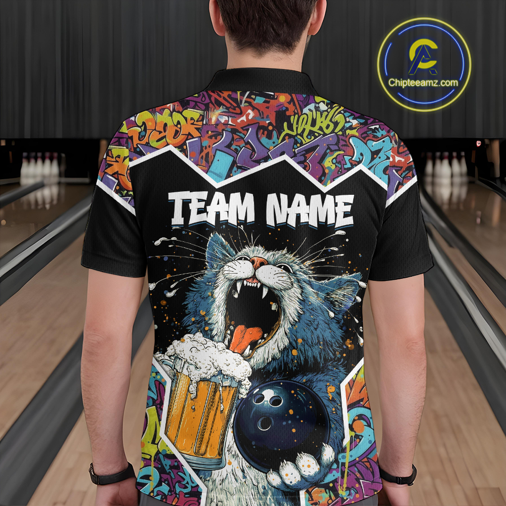 Custom Funny Cat Beer Bowling Jersey for Men Polo & 1/4 Zip Bowling Team Shirts HNT146