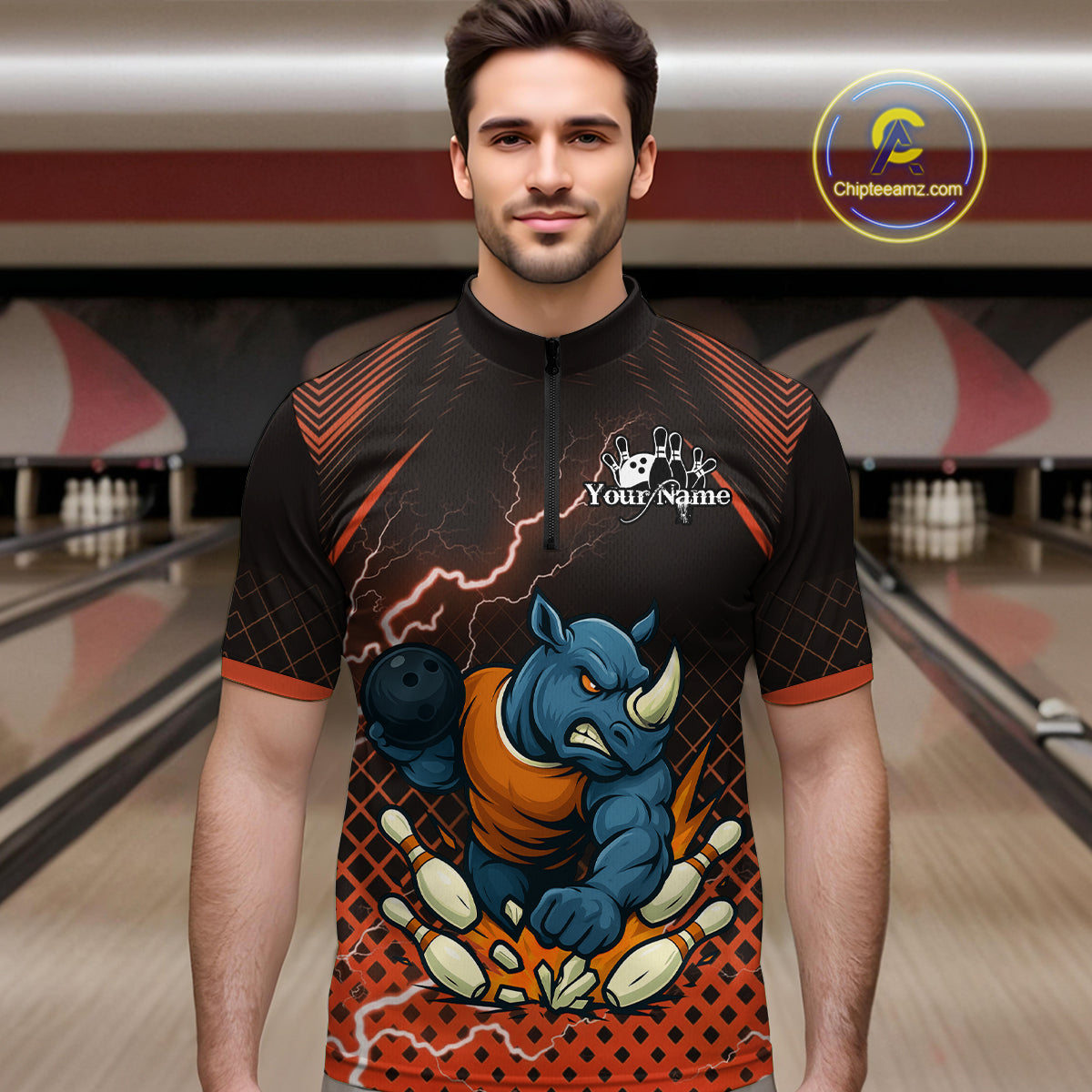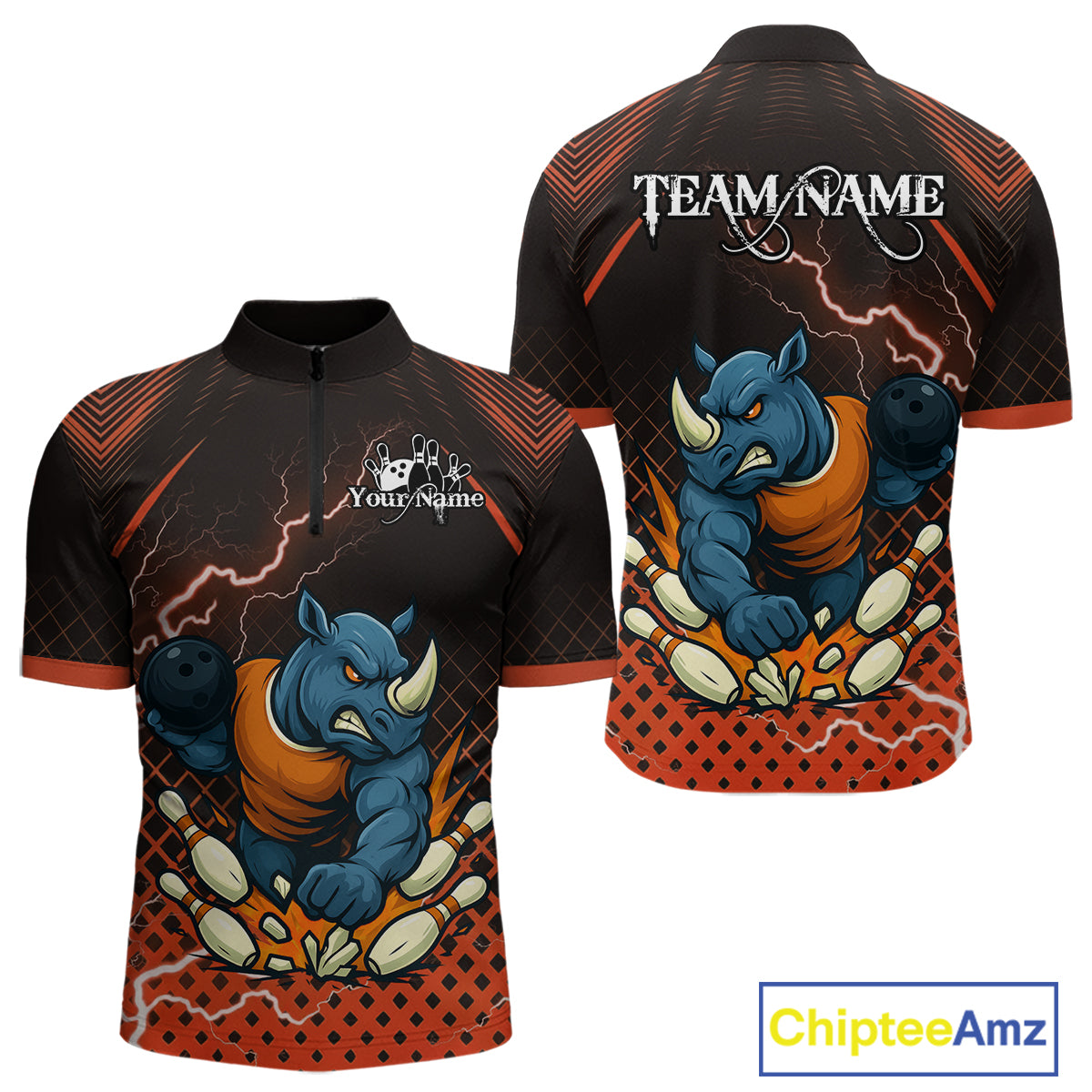 Custom Funny Orange Rhino Bowling Team Shirt for Men Bowling Jersey Polo, Quarter-Zip Outfit QZT805
