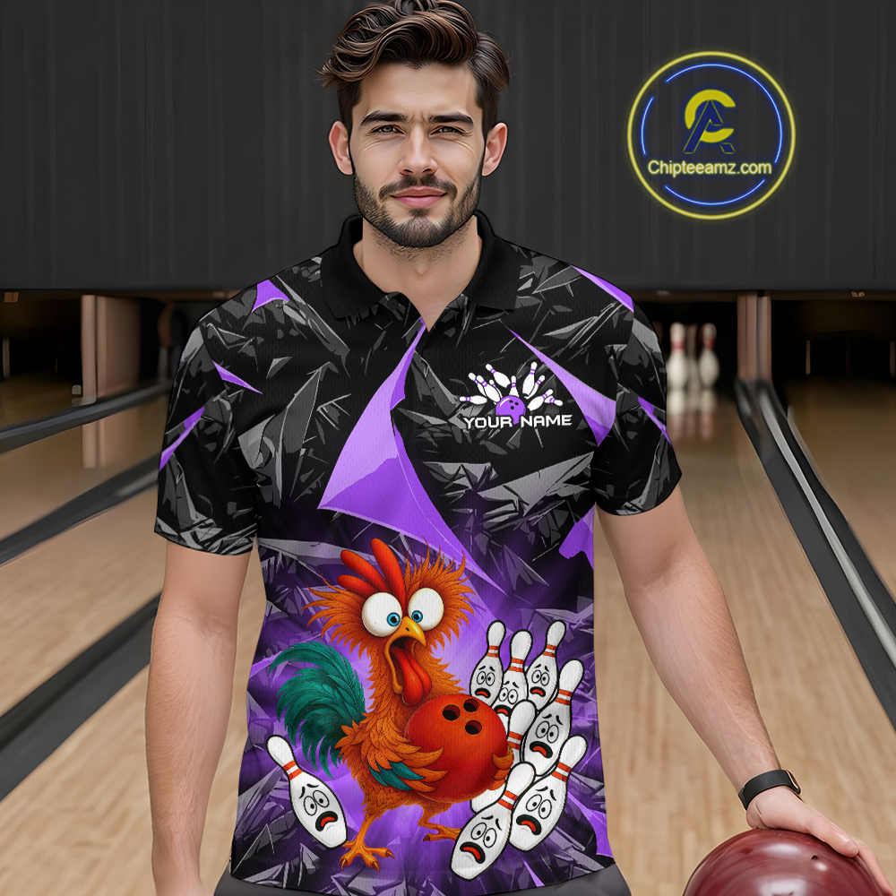 Custom Purple Funny Chicken Bowling Jersey for Men Bowling Team Shirts  Polo & 1/4 Zip HNT138