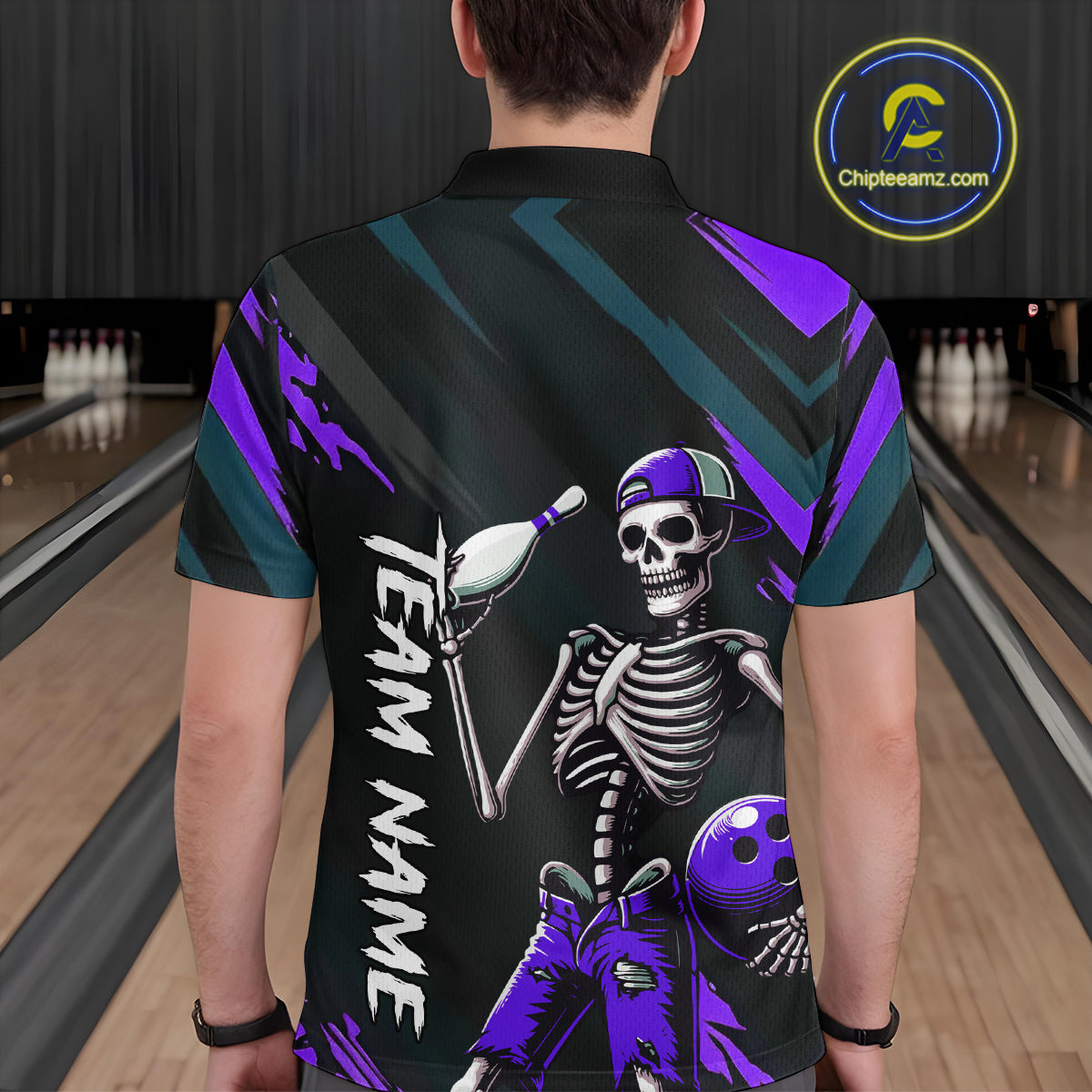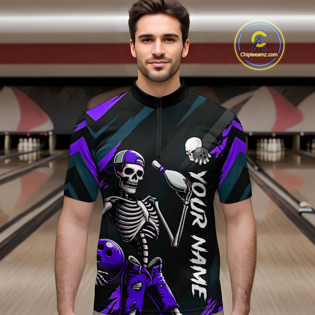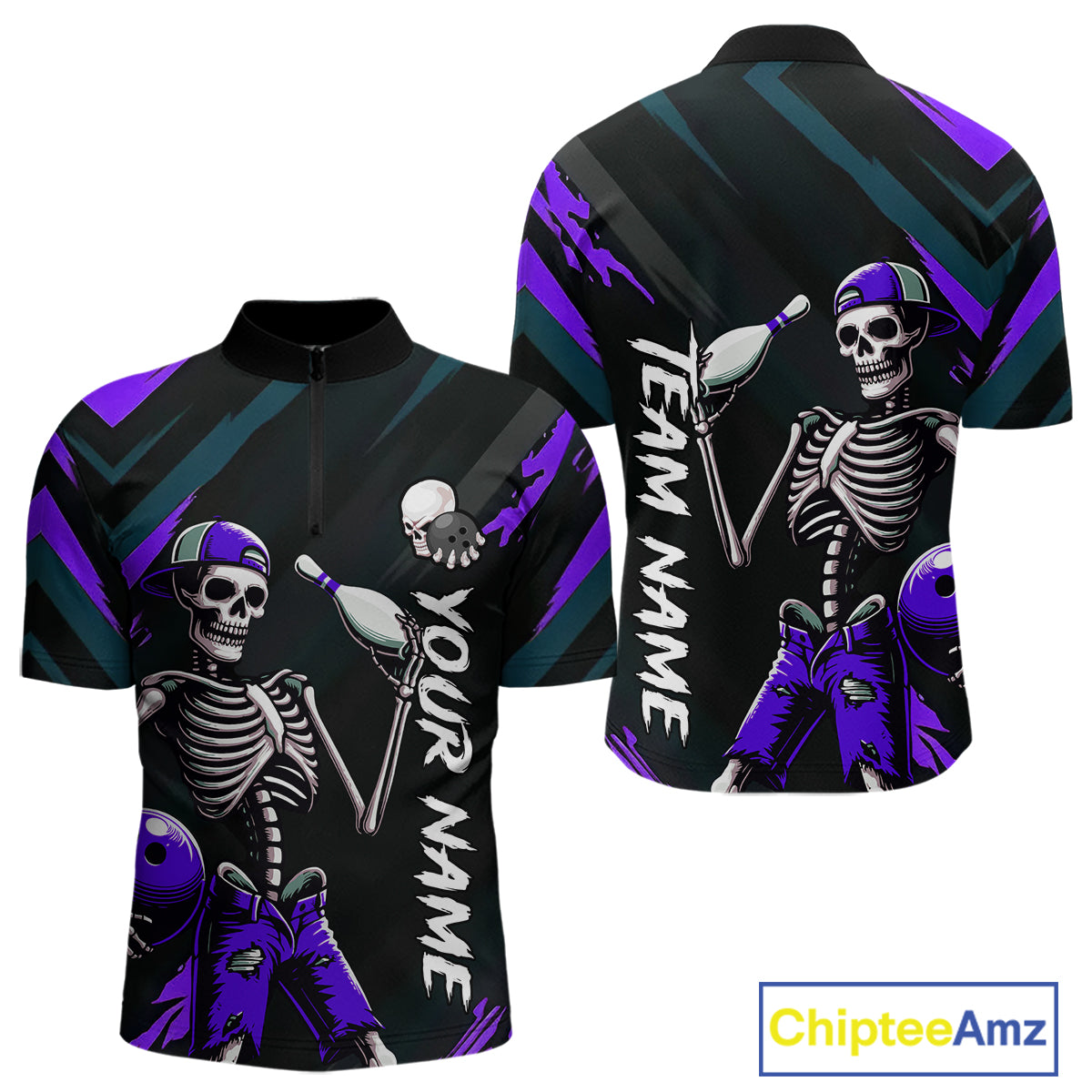 Custom Purple Skull Bowling Team Shirt for Men Polo & 1/4 Zip Bowling League Jersey Bowling Unisex QZT794