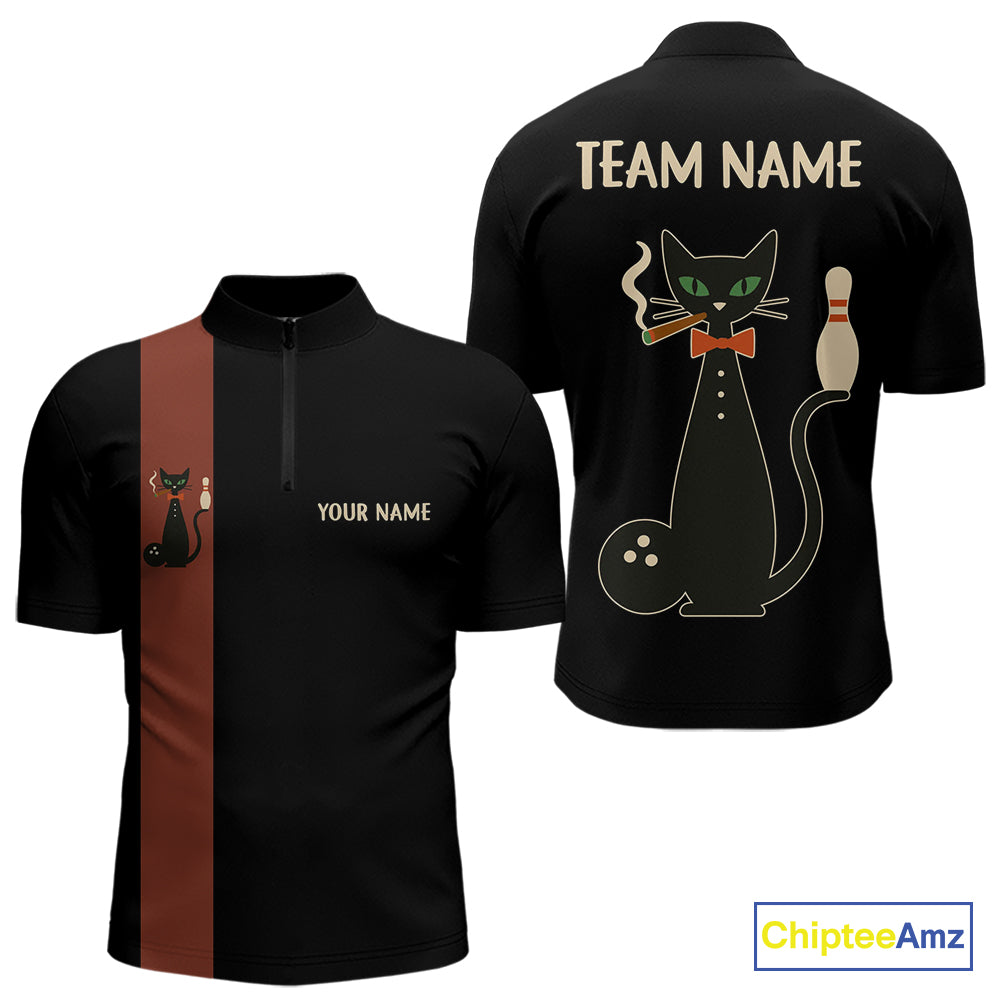 Custom retro bowling shirts Black and Orange Funny Cat Bowling jersey for men Team Bowling Outfit NQS11073