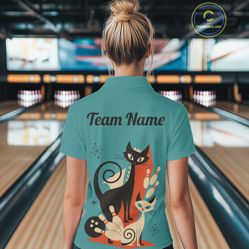 Custom retro bowling shirts Cats Bowling jersey for Women Team Bowling Polo, 1/4 Zip Shirts | Blue NQS11072