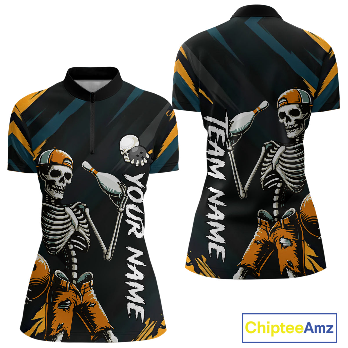 Custom Yellow Skull Bowling Team Shirt for Women Polo & 1/4 Zip Bowling League Jersey Bowling Gift QZT794